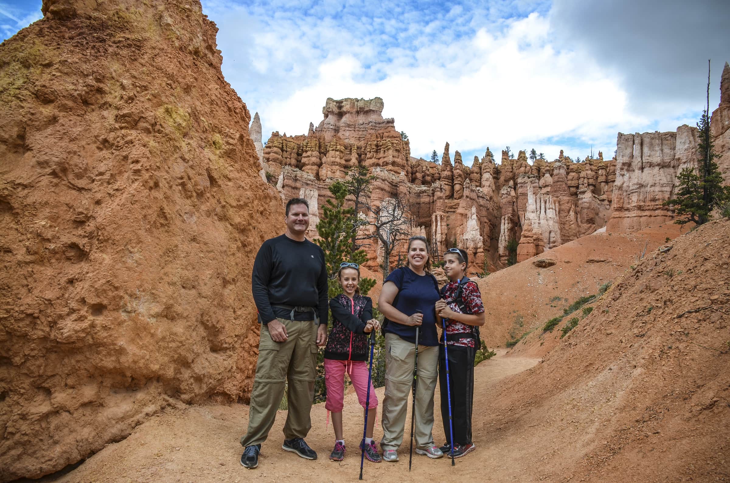 Tom W drove the couple of hours and before we knew it we were at the entrance of Zion National Park. We took our traditional family photo at the Zion sign and I got behind the wheel. The drive through the park was beautiful. We had to drive through the longest tunnel I think I have ever driven through. I was happy they had cut out windows along the way so it didn’t feel so clausterphobic. After driving through the many switchbacks we were at our hotel just outside the other side of the park in Springdale, UT. We threw our stuff in our rooms and headed out to find dinner. We ate at a local touristy American restaraunt. Tom was all set on a turkey club type sandwich (shocker for anyone that knows him), and was surprised to find out that the restaurant didn’t serve their sandwiches after 6:00p.m. Really? That seemed so weird. He changed his order to chicken marsala and I got a steak. The food was good, but the waiter was lacking. After dinner we were on a quest to find one more geocache for Jen to drop a trackable in. With the sunsetting we found one just in the knick of time. Back to the hotel and straight to bed for us. Another early morning was upon us for Friday.