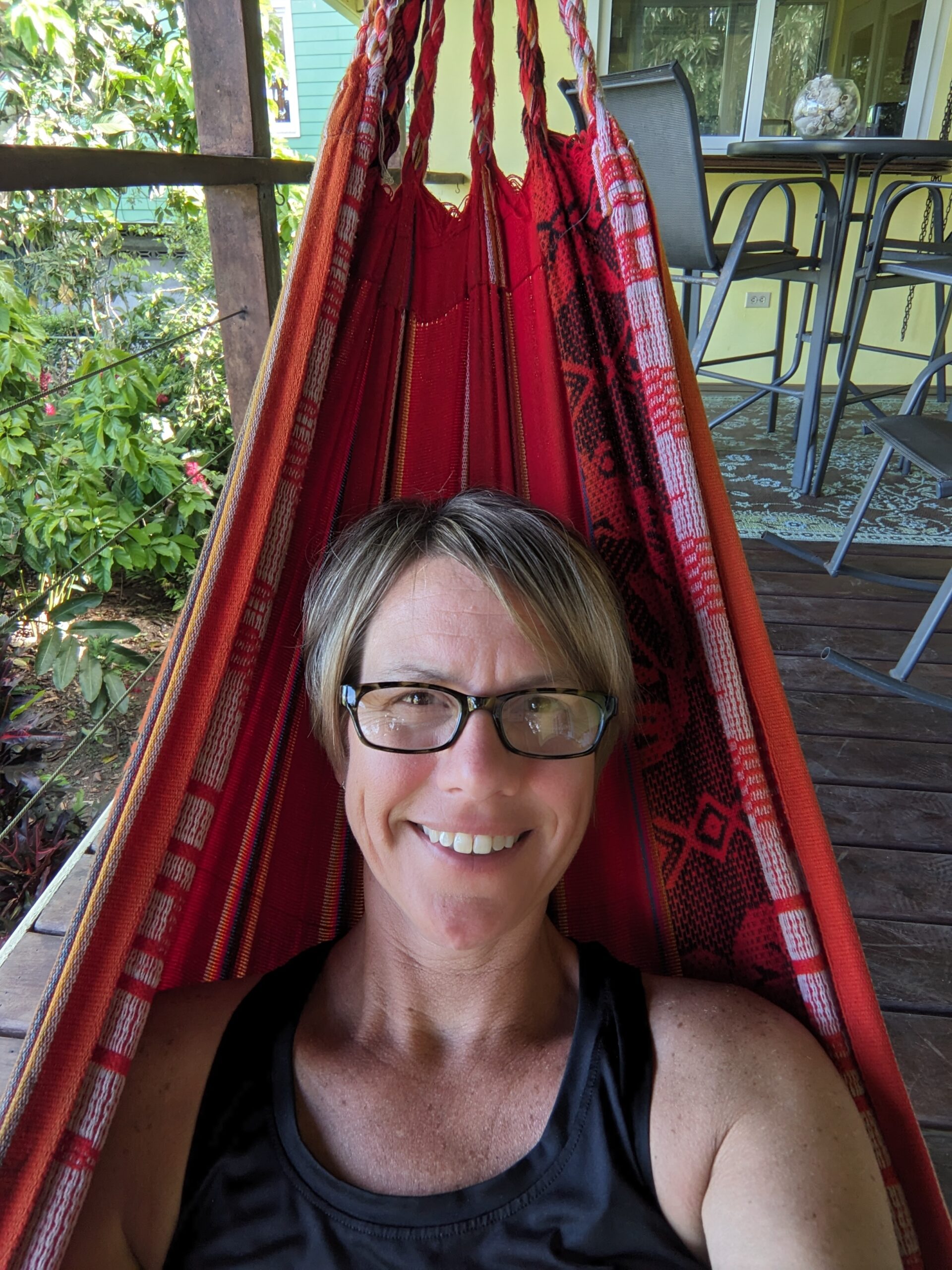 After lunch I cleaned up my glass and relaxed in the hammock on the deck. I finished the book I was reading last night, so today I started a new book “Origins” by Dan Brown. I only read the prologue and Chapter 1 before I started feeling sleepy swaying in the hammock. I closed my eyes but didn’t fall asleep. It was still nice to just lay and relax in the hammock. The temperature felt perfect.