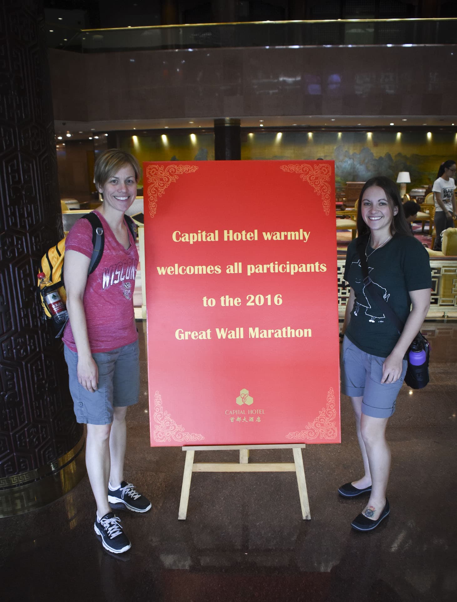 SOB_1180The trip that has been in the making for a few years has finally come! It all started in October 2010, when Tom and I were on our European adventure when we walked by the end of a half/full marathon in Paris. At that time, I thought it would be super cool to travel to do a race. I discussed this with my racing, and much faster more competitive co-worker Leah, and she was on board. A few years had gone by when she mentioned that she would like to do a tri-athalon in Japan. My response, was why Japan and how are you going to get your bike there? Perhaps you should find a marathon where all you need to pack is your shoes. Hence the hunt for an international race began and she found the Great Wall Marathon. By this time I had gotten out of running long distances and said I would be happy to go with her and I would watch the race. I came home and told Tom that I was going to China with Leah and asked if he wanted to come along. He said of course! As time got closer to the opening of the race registration for 2016, Leah had talked me into doing the half. So here we are in China, touring and racing on the Great Wall!