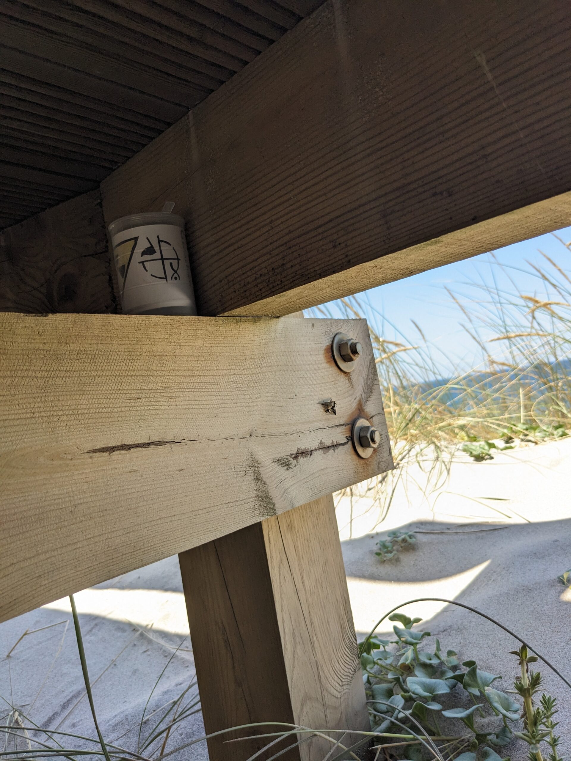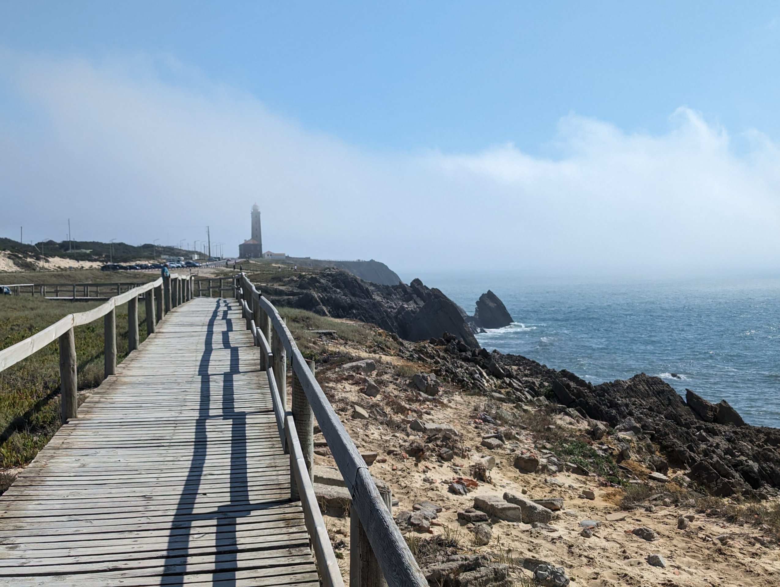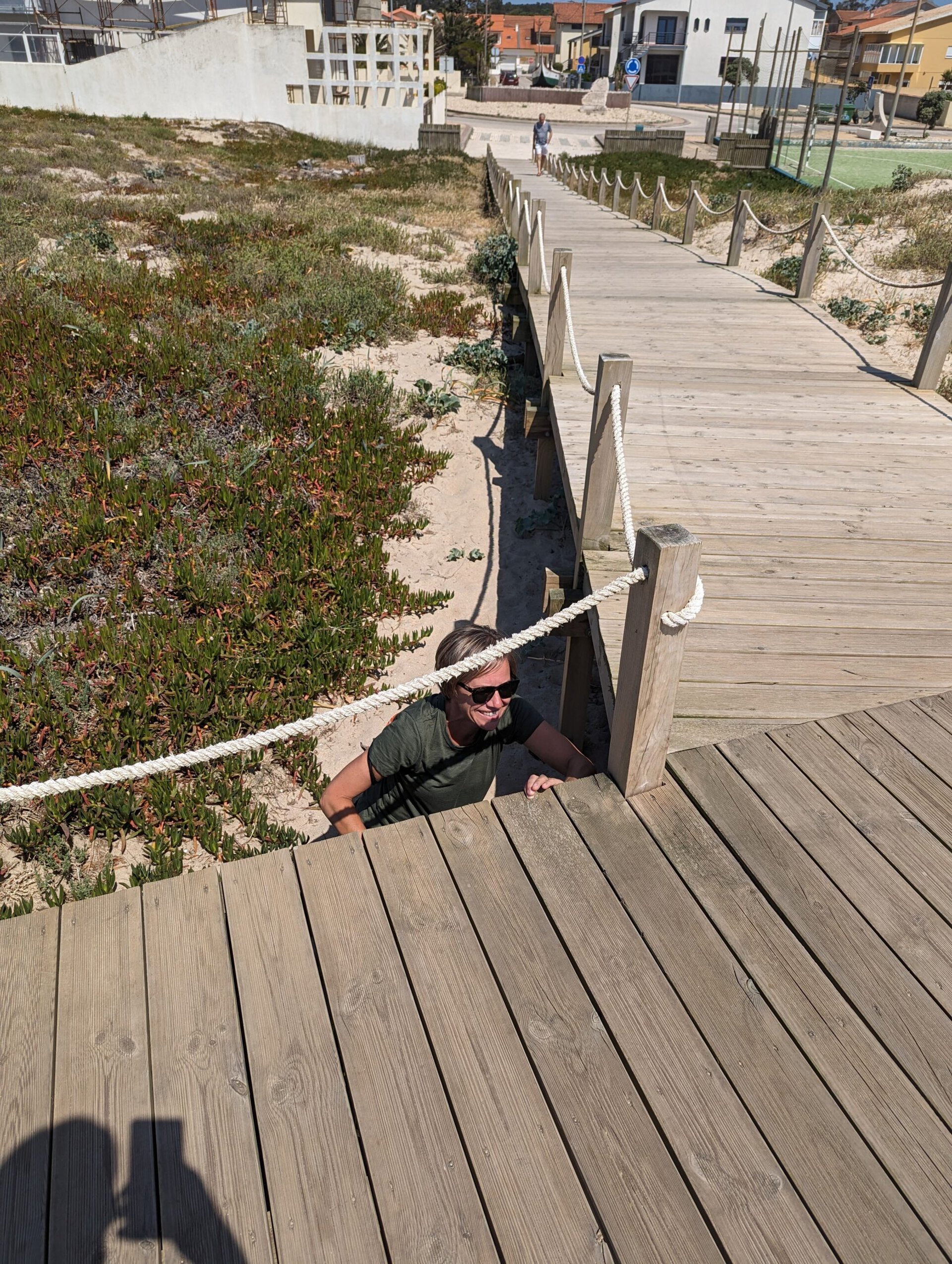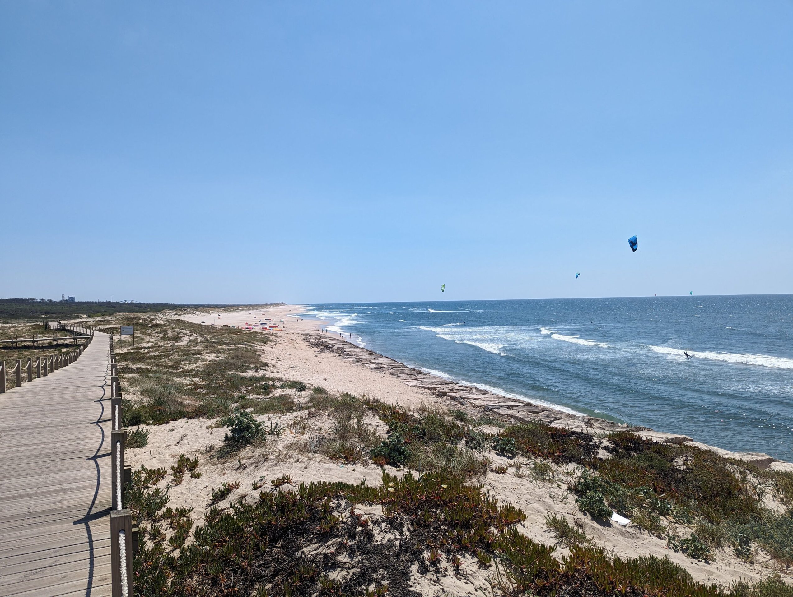 After about and hour and a half we made a short detour to stop at a beach. We easily found parking at a playground next to the beach. Of course I checked for any geocaches in the area and found one relatively close by. It was located along the boardwalk so it was a perfect one to attempt. It took me right to an intersection of the boardwalk so I found a way to crawl under and take a look. Unfortunately I didn’t spot any geocache containers. We didn’t want to spend a lot of time at this stop so I gave up the hunt relatively quickly. What also makes geocaching a little more difficult is that the cache description page and hint are all in Portuguese which doesn’t assist me in giving me any additional clues of where I should look. We walked down to the water’s edge and I walked a very short way on the beach. I did find a couple of very small pieces of beach glass. On the way back to the car I checked under the boardwalk one more time for the cache but came up empty handed.