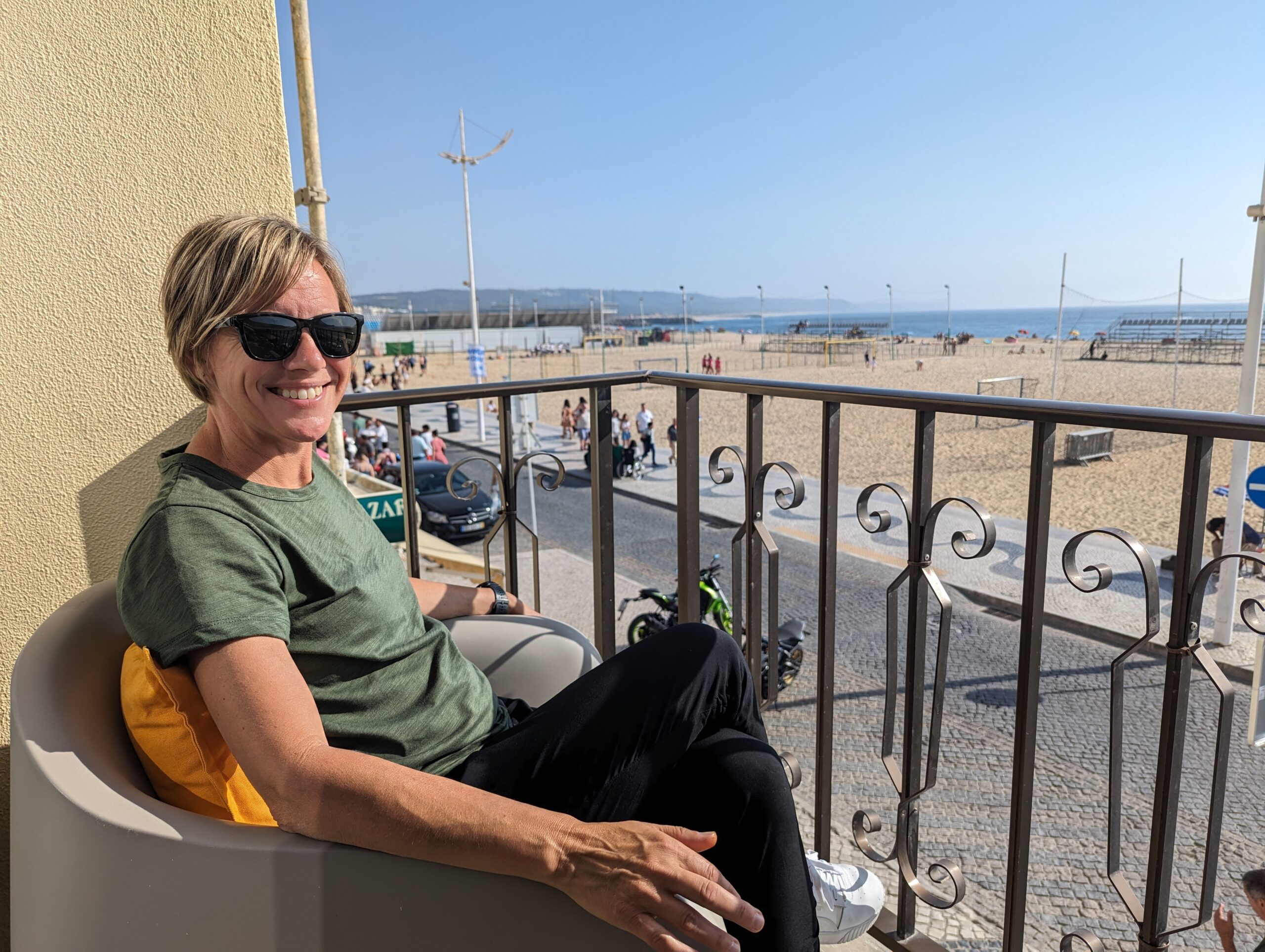 We made it to Navare at 5:15. This is a beach town popular with surfers. We tried to get close to the Airbnb but the roads became single road alley types so I quickly made my way back up to the main road where we found a space that we believe to be free and not time restricted. We walked the several blocks to the AirBnB where we were to meet our host. We were lounging in the alley when an old lady leaned out her third story window and asked if we were there for the apartment. We said yes and she came down to show us into the apartment. We are on the second floor with a very nice balcony that overlooks the ocean. Good job Tom in booking this one! We had just brought our small bags with us until we had gotten into the apartment, so we trekked back up to the car to get our backpacks. It was a downhill walk to the apartment so I can imagine when we leave in a couple of days, how much fun it will be to walk up these huge hills with all our stuff.