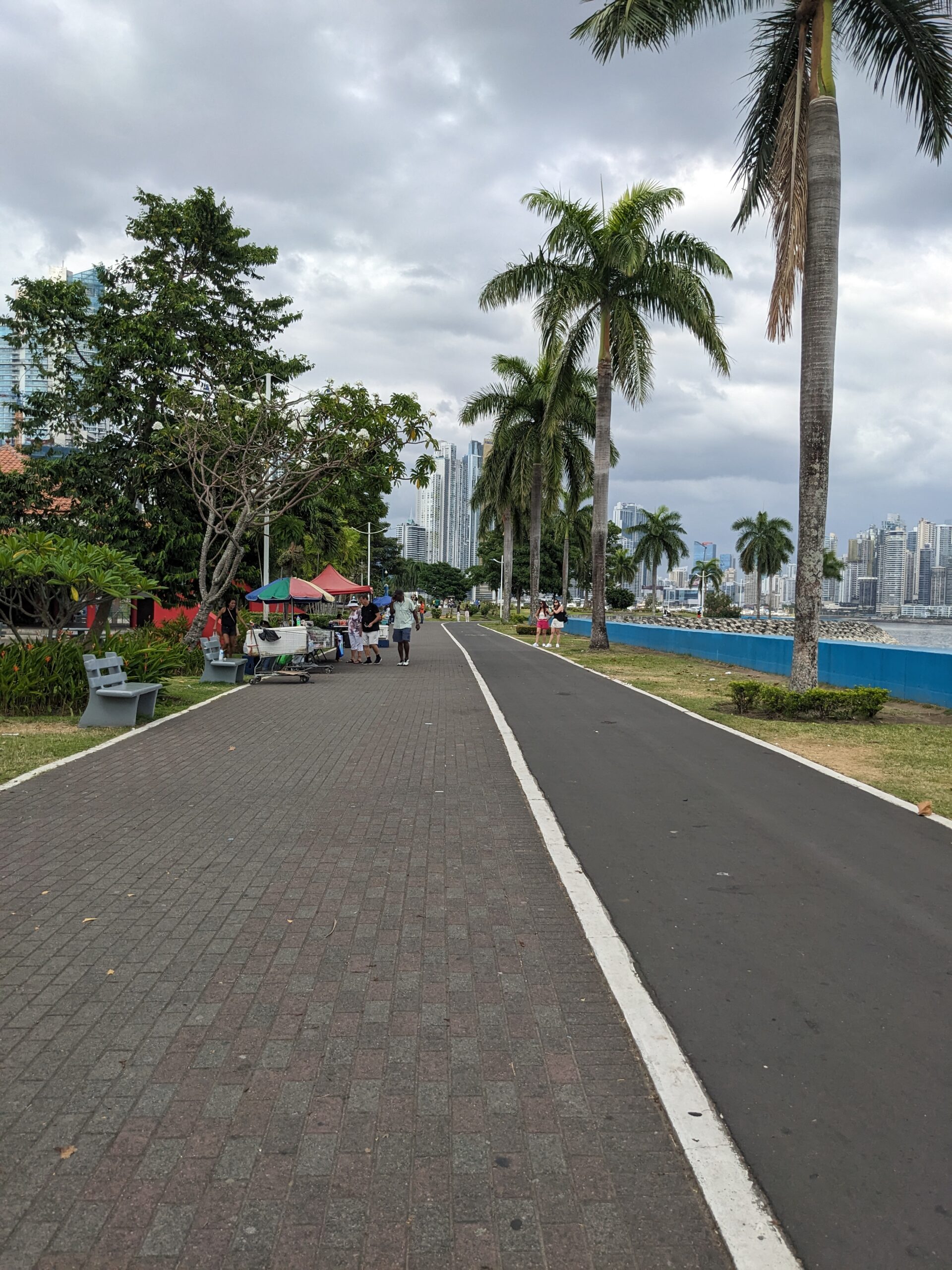 I brought Linda back to the apartment and put on tennis shoes, as next up on my agenda for the day was to geocache. I drove down into the heart of the city and parked in one of the parking lots on the Cinta Costera parkway (near the Panama sign). I decided to go for the Challenge cache for finding 10 or more caches in Panama first. This cache was located on the same walking path that Tom and I had walked when I made my first cache find in Panama. We had walked right past it but I didn’t even think about checking it out at that time. So back I went .. . just to be disappointed that I couldn’t locate it. I think it might be missing.