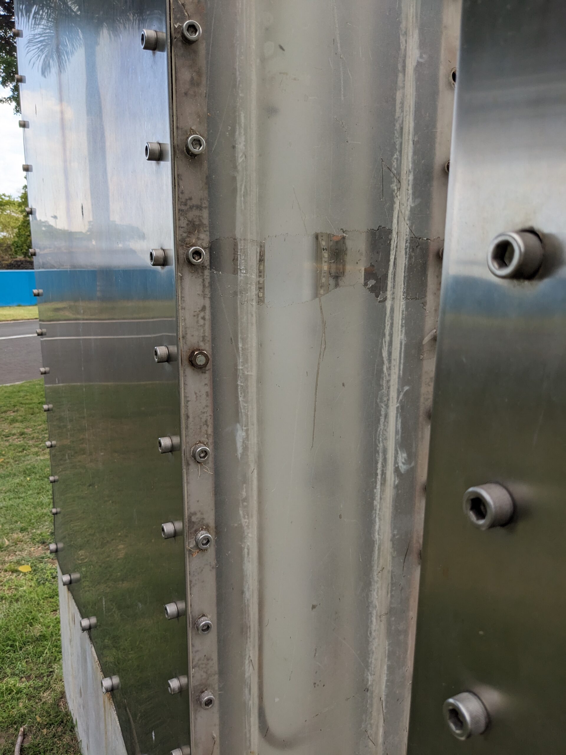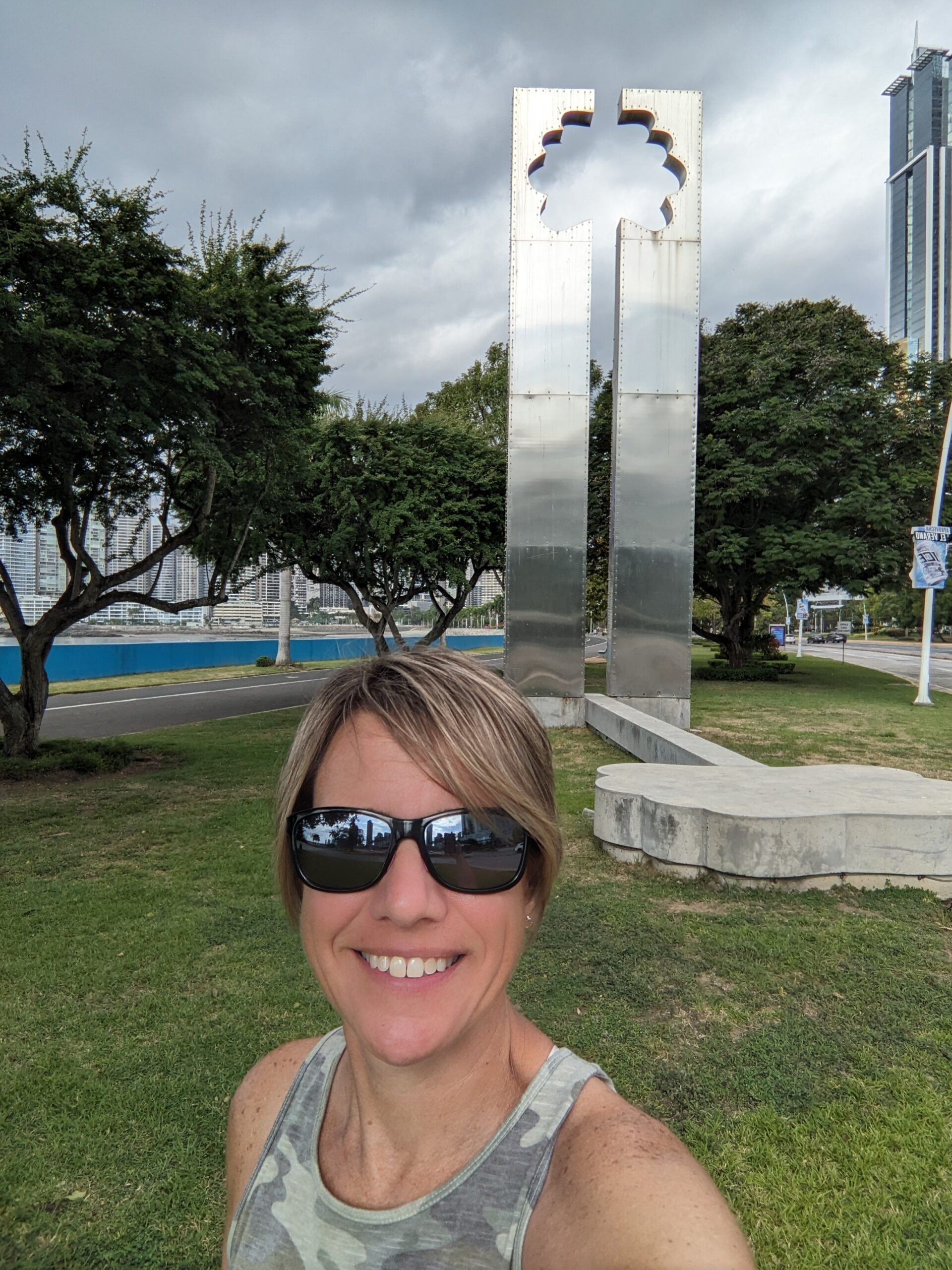 So back I went along the pathway passing the Fish Market, the Panama sign, and other sights I had seen previously walking along the path. The second cache took me to a sculpture by Sydia Reyes, a Venezuelan-American. According to the information at the sculpture: “This work “Sketch for a forest” has been planted and remains in different cities such as Chicago, Wisconsin, Caracas, and Panama. Each one of them designed with different measurements and some variants, this being the tallest and the first with integrated lighting.” I didn’t know Wisconsin was a city. I found on her website: “Green Bay, Sketch of The Forest III, Wisconsin USA” but couldn’t find a picture. Maybe if I keep searching I will find it, but for now it’s time to move on with this post. I’m happy to say that I found the cache right away!