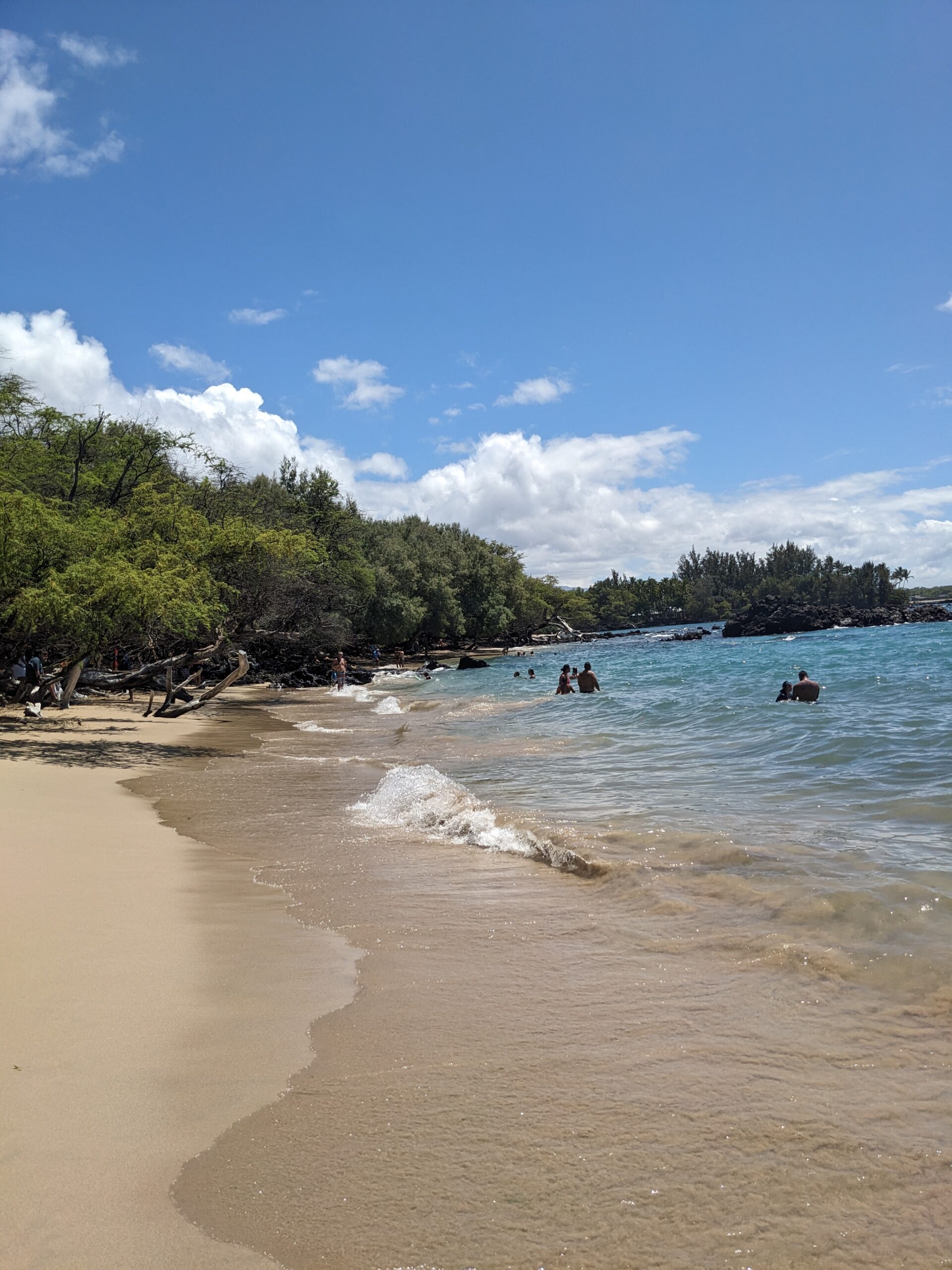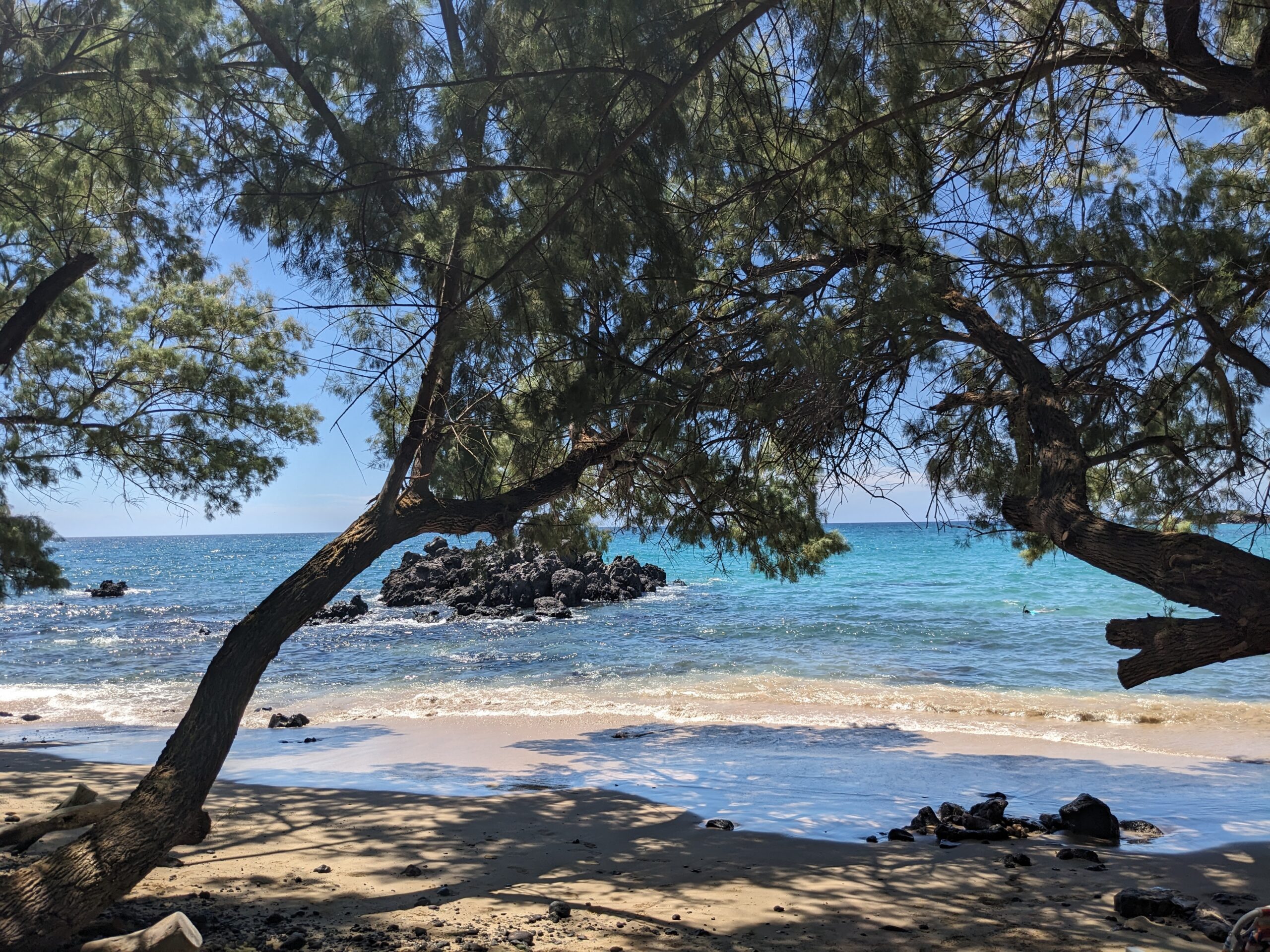 We next moved down the road to Hapuna Beach. This was a smaller beach, but yet just as pretty. It was weird to see pine trees line the beach instead of palm trees. There were no geocaches here but I enjoyed the short walk and views.