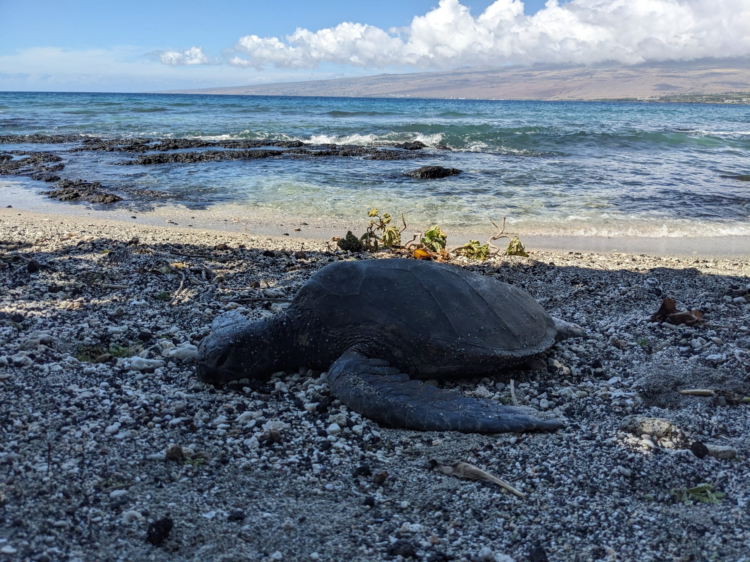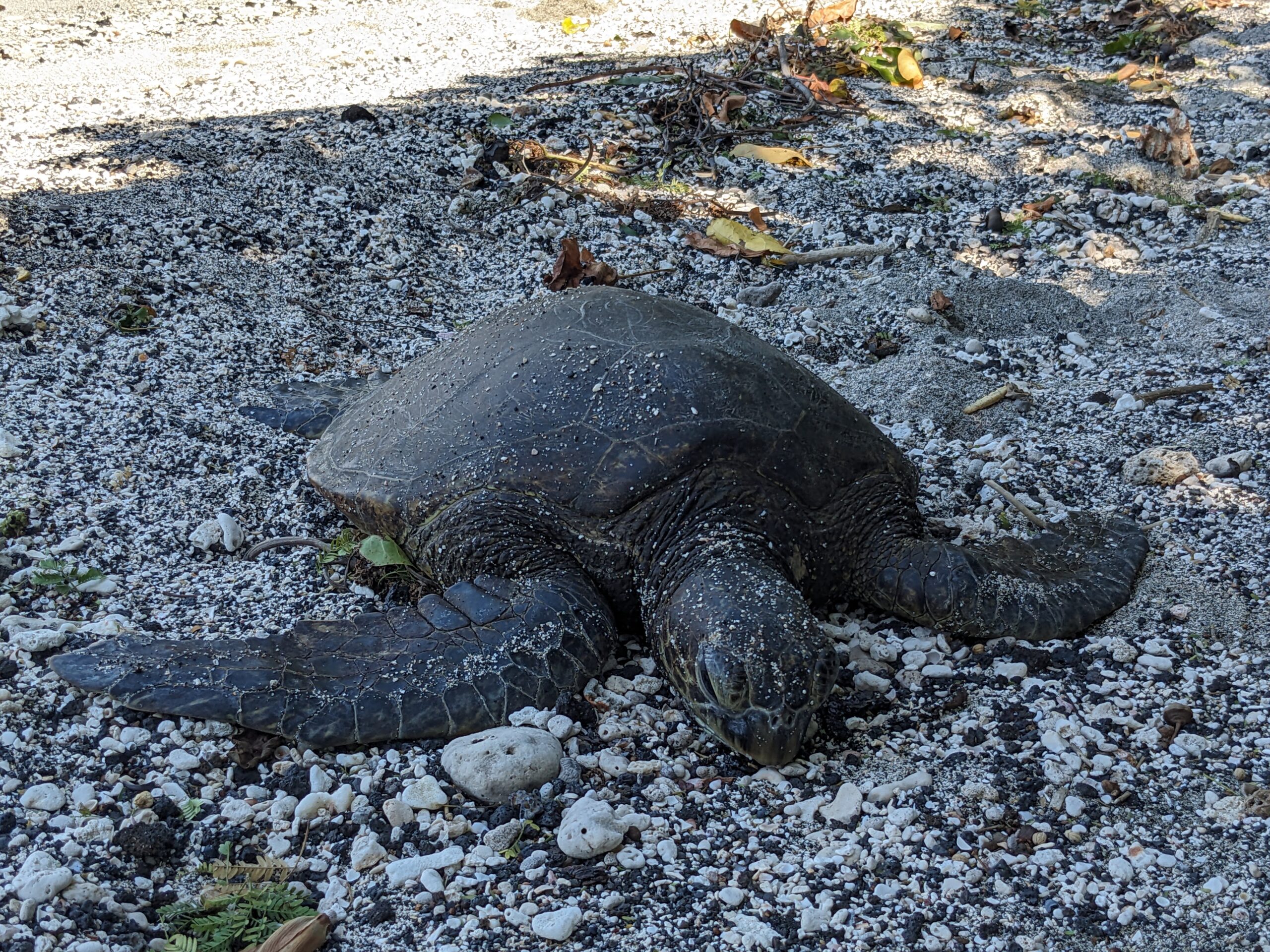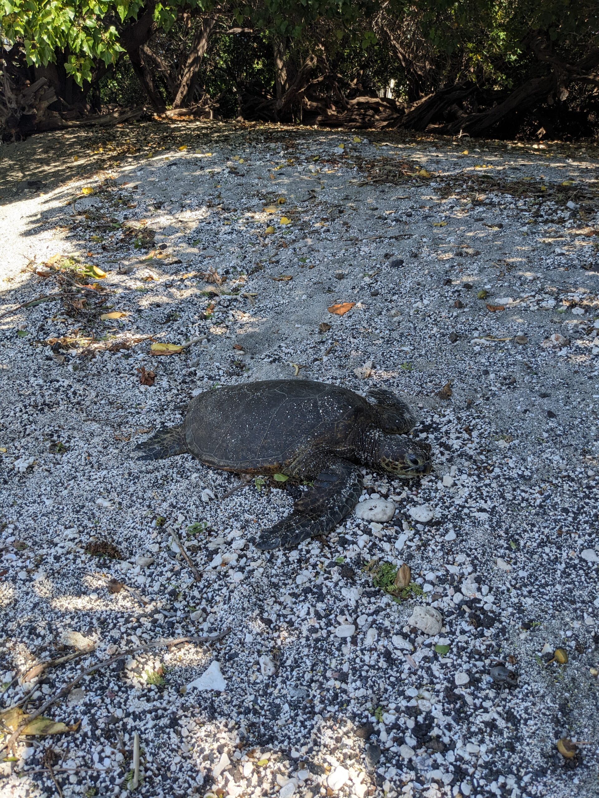 From there started a string of 5 caches all at public beach access points. I was able to find 3 of the 5 caches. At one of them I walked the tiny stretch of beach after I had made the find and almost stumble across a sea turtle sunning itself on the beach! I had been looking left and right and almost didn’t see it directly in front of me. He had lifted his head at the same time I turned mine toward his direction. It startled me for sure, but I felt blessed to have been given the opportunity to see the turtle up close and personal. Thanks geocaching!