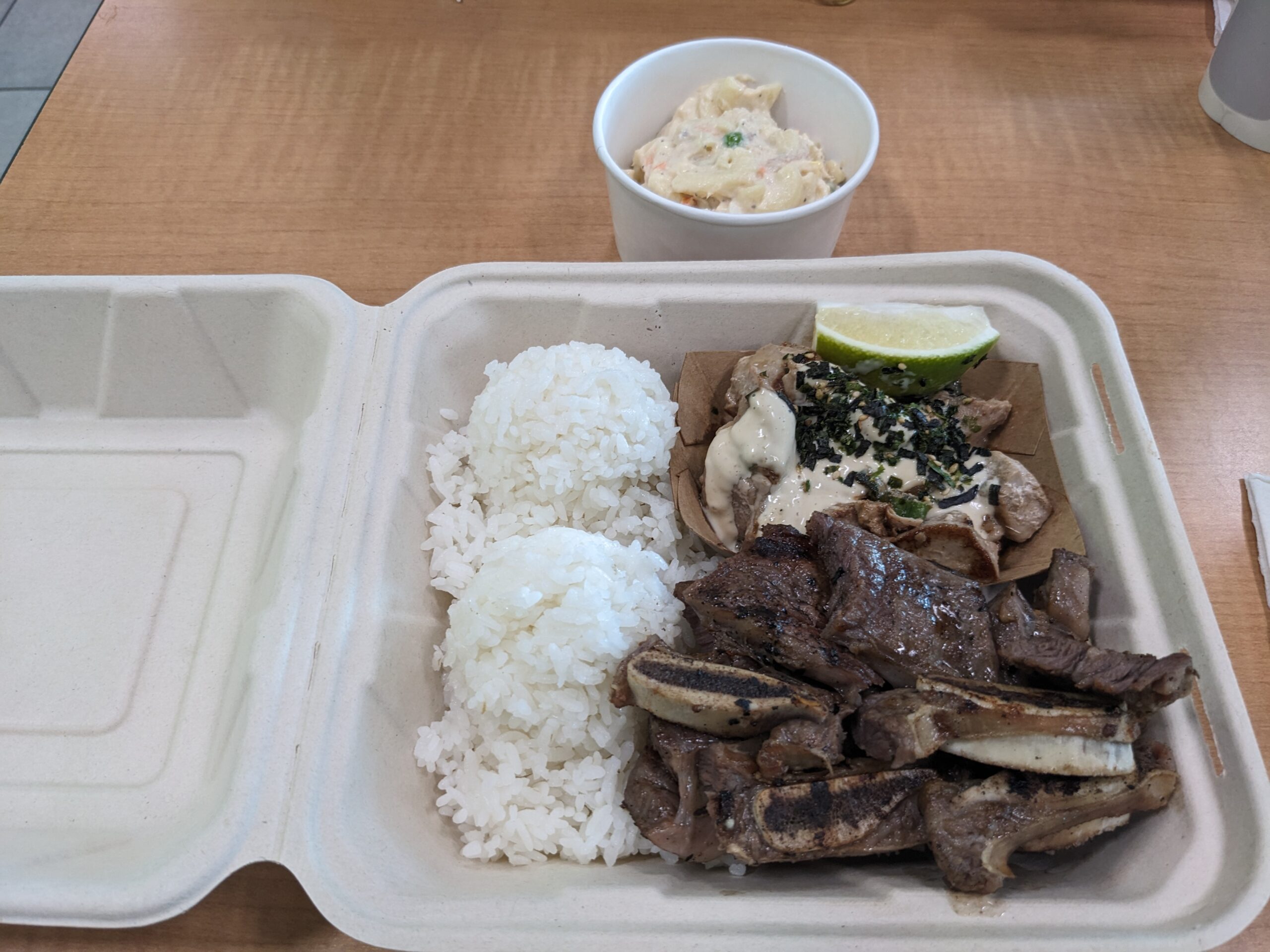 Having found the last of the beach access caches, I felt “cached” out for the day and was ready to head back to the condo. After dropping our stuff at the condo we headed up to the Ocean Club (pool and bar area for the condo) and enjoyed a happy hour Mai Tai. They really do make them quite good here. While enjoying our drink I stated I wanted some authentic Hawaiian for dinner. The bartender at Ola Brewing a few nights before had mentioned a place called Pine Tree Cafe (https://www.pinetreecafehi.com/) that had good local food, so that is where we went. I couldn’t decide if I wanted to try the fried poke or the Pulehu short ribs so I asked the person taking my order which one I should get. She said I could do a little of each!! Perfect! I liked them both, but if I had to order again I would go with just the fried poke. The seasoning on the ribs was outstanding, but they were a little chewier and more work to eat than the poke. The flavor on the poke was also very good.