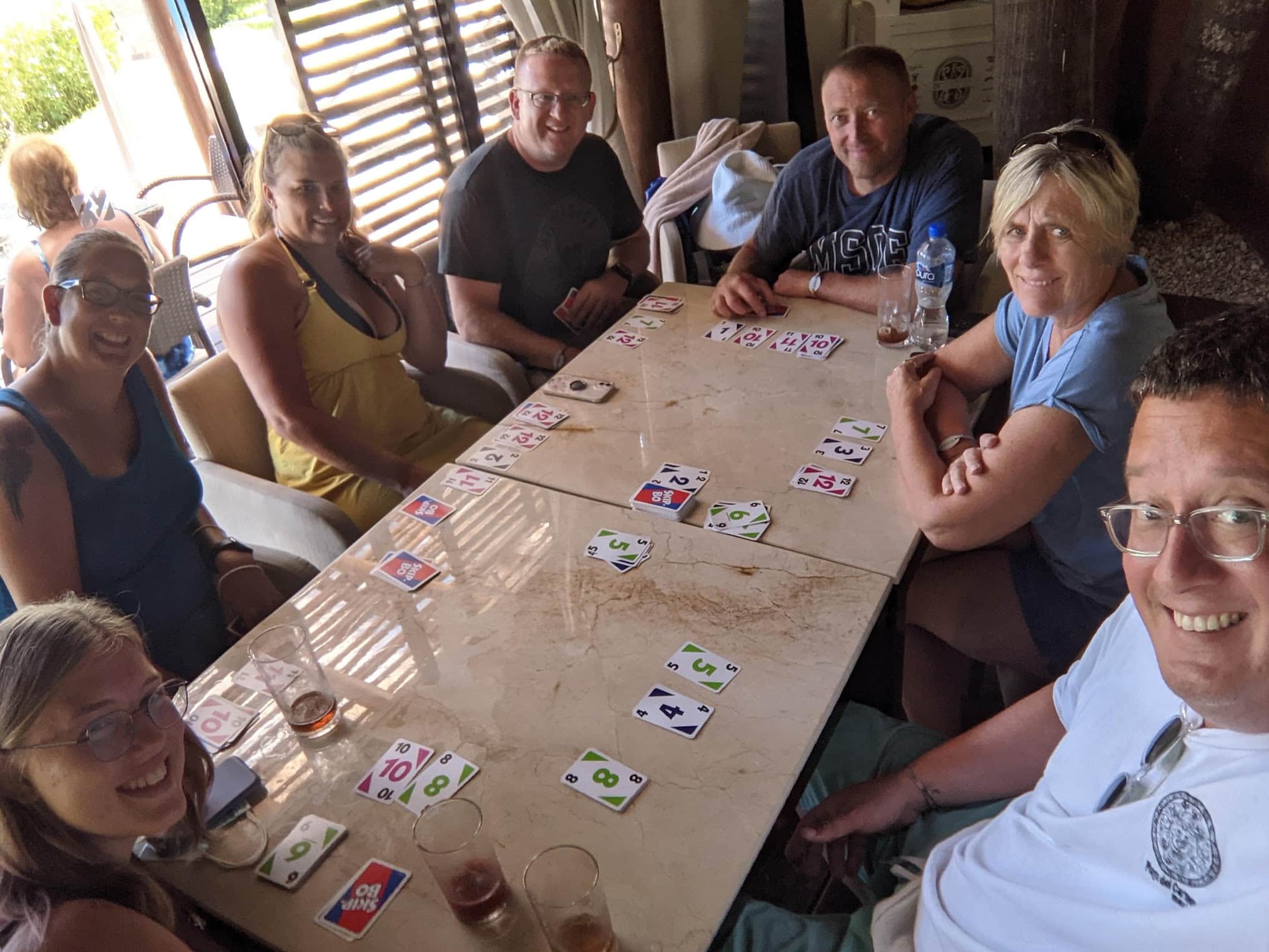The last few days I spent some time by myself closer to the ocean relaxing and reading “Outfox” by Sandra Brown. It was pretty good. We also spent some time this trip playing cribbage, Phase 10, and SkipBo. Tom and Todd played an epic game of chess that Tom thought he was going to lose most of the game, but then came back to beat him. We enjoyed tossing some water balls around the pool and playing “Pickle in the Middle” with Owen and Emma. Tom, Linda, and I came up with a game in which we tried to get a water ball through a small pool ring (yes I guess this is kind of like basketball) and had fun with that. Most nights after dinner we just went back to the room to relax. Tom and I tried to watch a movie one night but fell asleep. Tom went to watch the rest of it the next night but apparantly my snoring was too distracting. I blame that on one too any pineapple, mango, vodka drinks. They were so tasty.