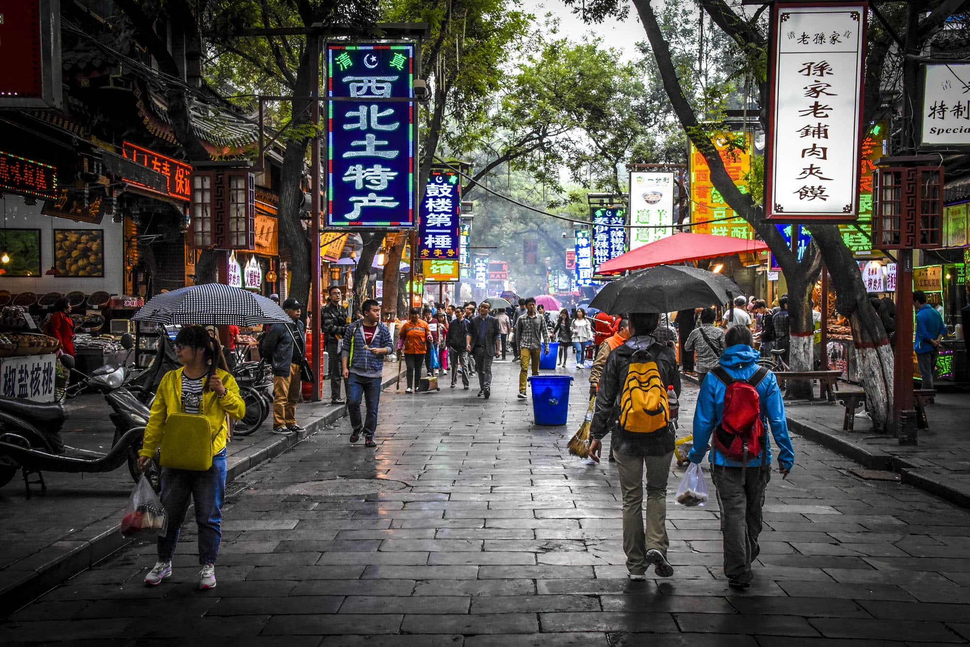 SOB_3124Next on the agenda was visiting the Muslim Quarter for lunch. The Muslim Quarter is an area of Xian that has many food vendors and souvenir shops. We opted to not go to a sit down restaurant, but to roam the streets as if it were the State Fair and try many different foods sharing with everybody. We had a lamb (maybe goat) skewer with amazing spices, deep fried dumpling things, fried tofu and some other deep fried thing that I had no idea what it was but it was tasty, some sort of sweet cake thing, dried kiwi, and Chinese hamburger. All was pretty good and our only complaint was that we didn’t feel like we had enough time. We were given an hour and 10 minutes or so, and we felt very rushed. I said I would have gladly skipped the museum and jade factory to spend more time here.