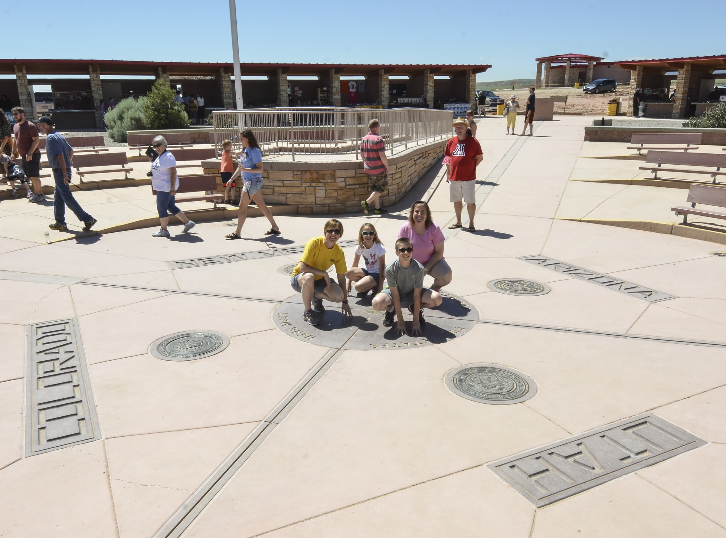 SOB_0811We headed out this morning towards the Four Corners where Arizona, New Mexico, Colorado, and Utah meet. The Four Corners Monument is the only place in the United States where four states share the same border and simply makes for a photo op. We took our turns and captured pictures of us being in 6 places at the same time (Arizona, New Mexico, Colorado, Utah, Navajo Nation, and Ute Nation). On to Cortez, Colorado and Mesa Verde National Park!