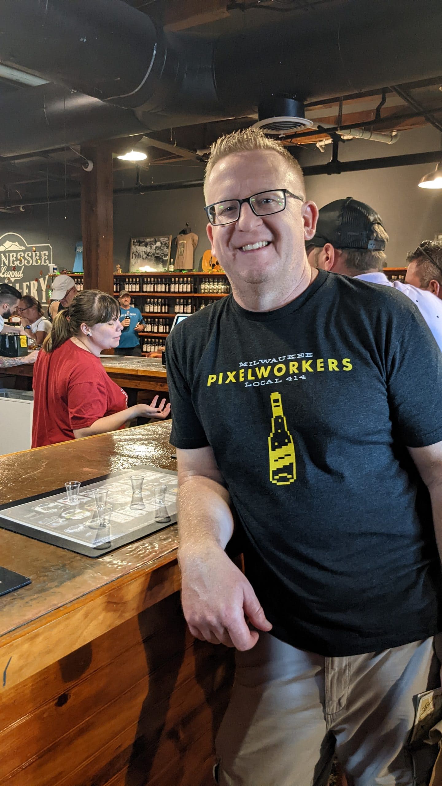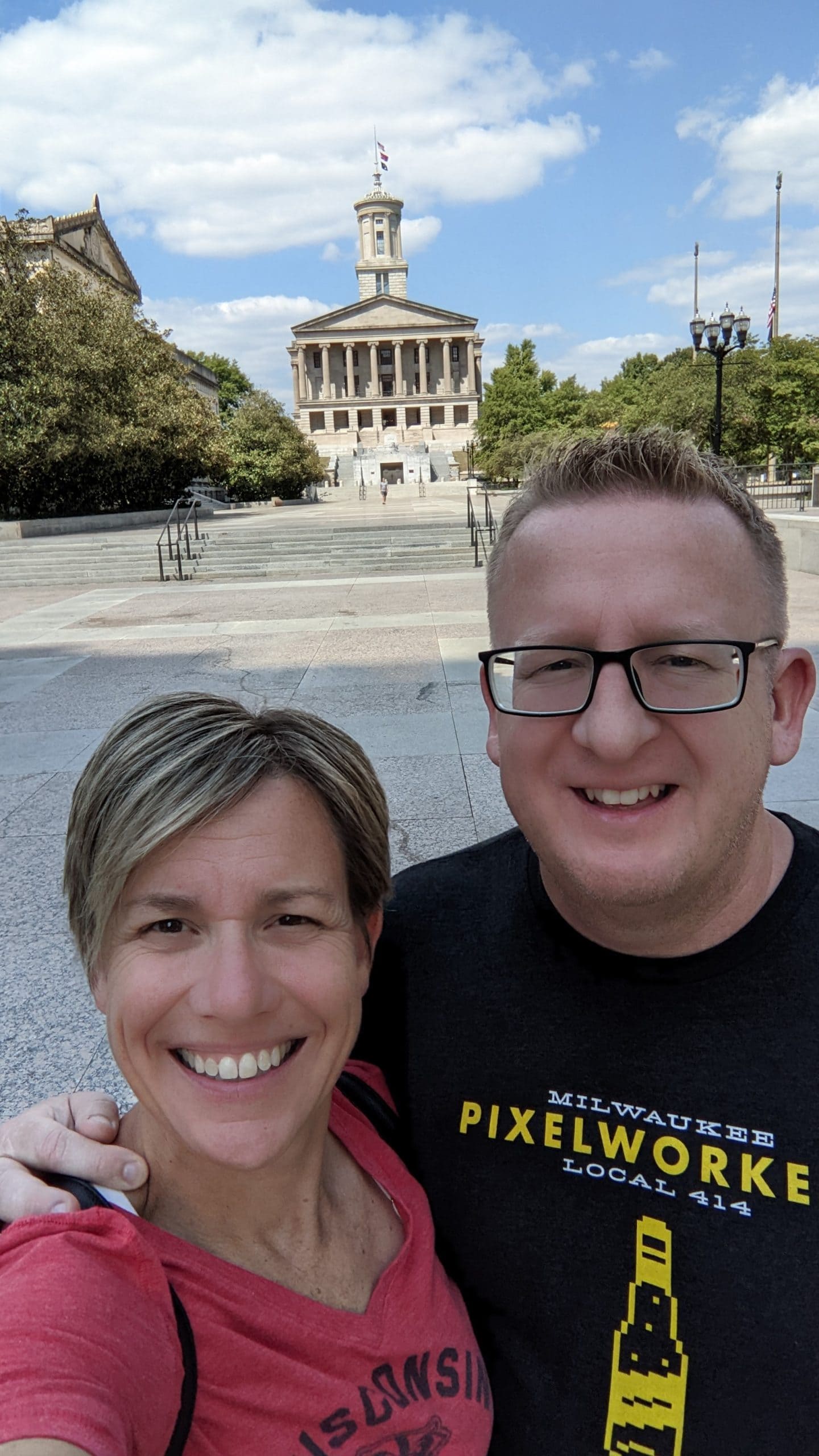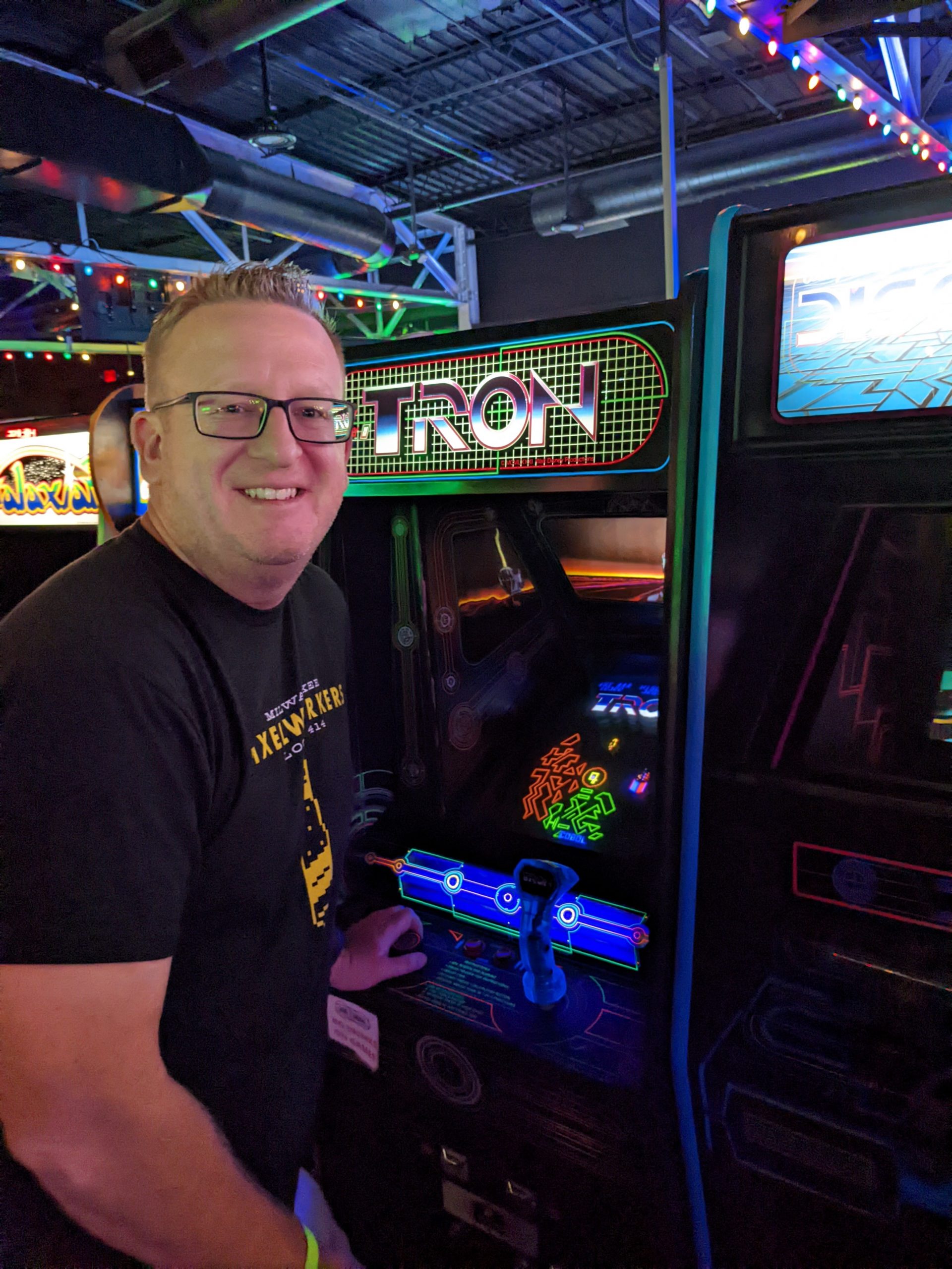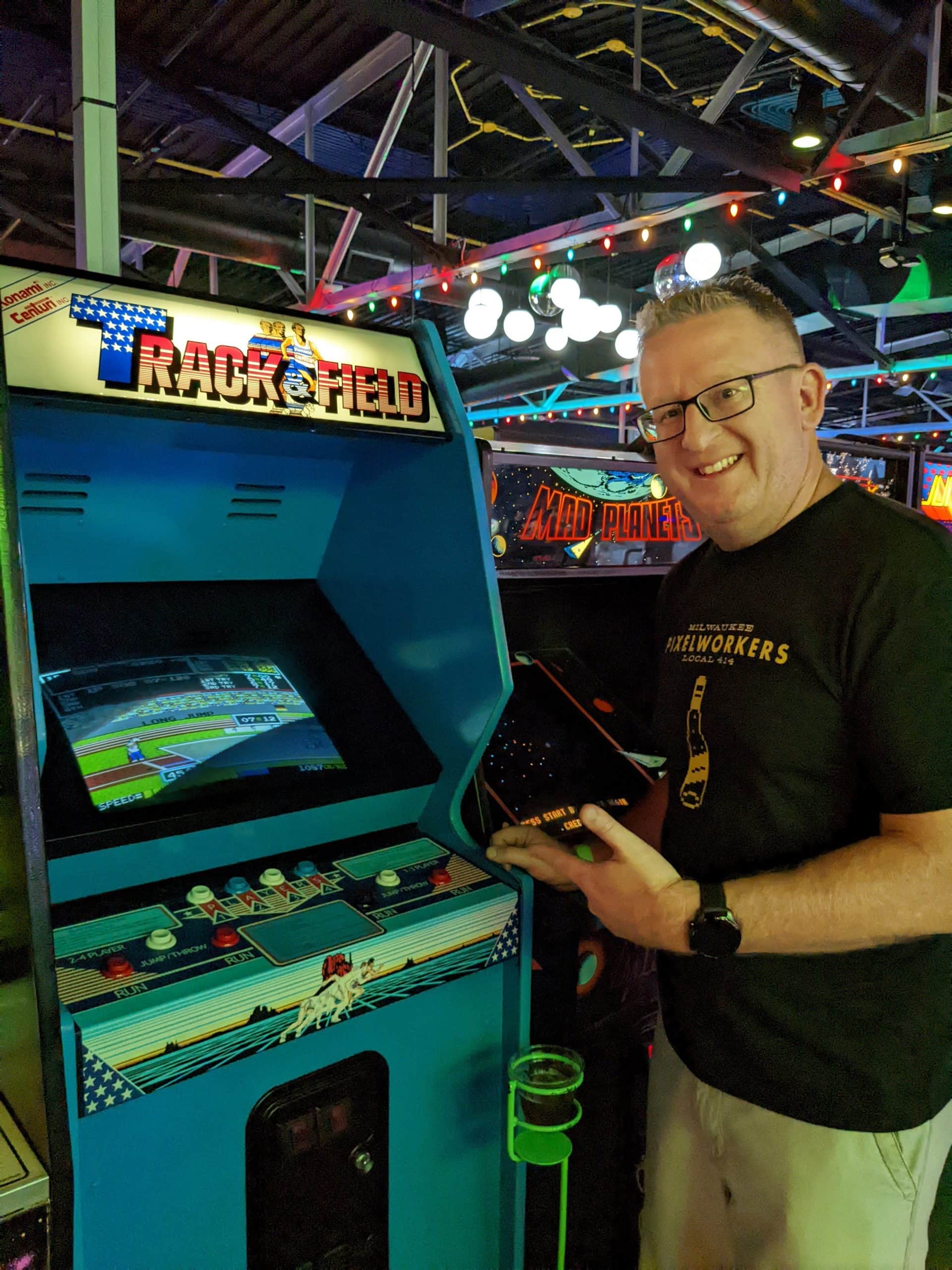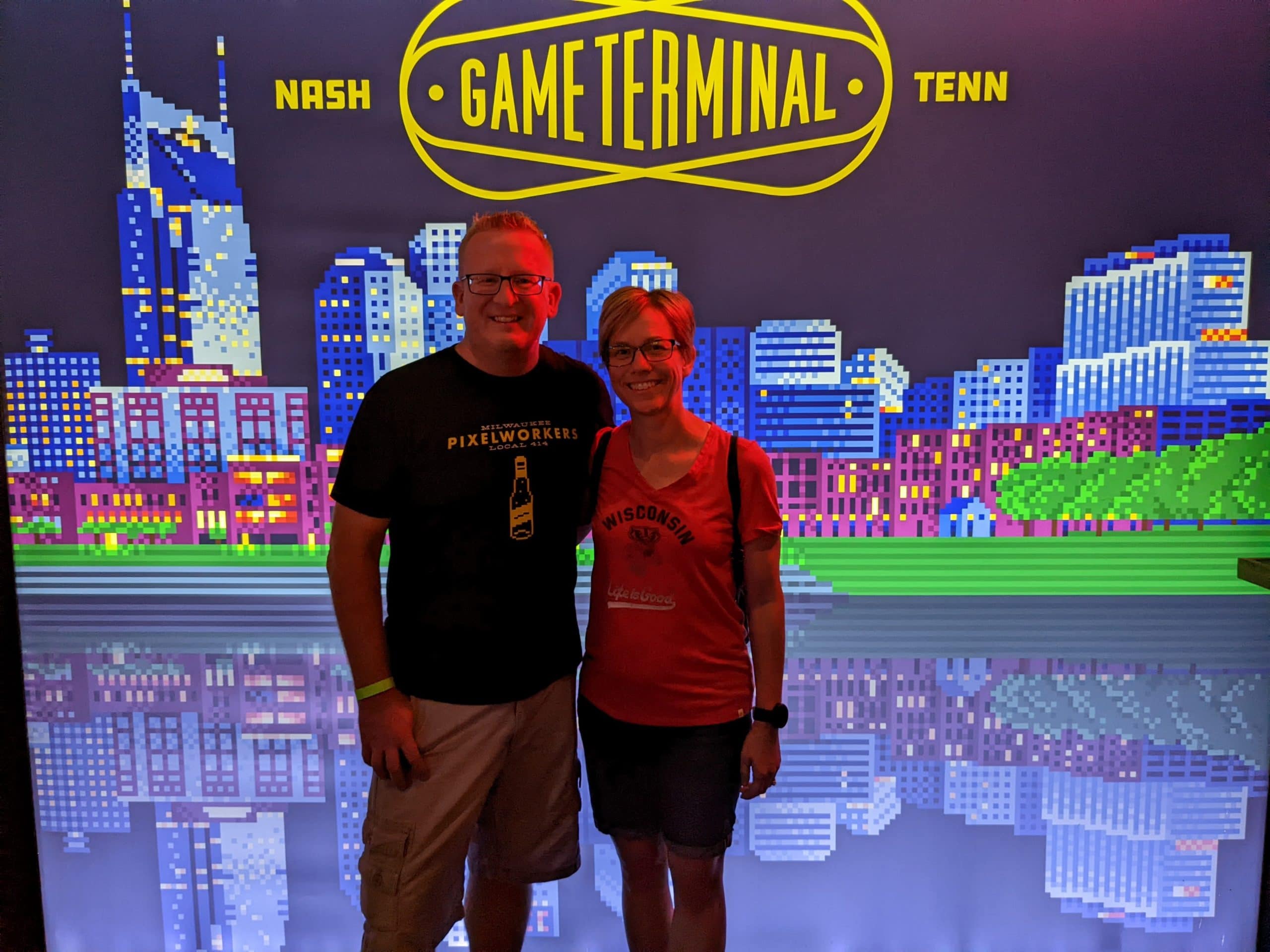 We walked toward the Federal Courthouse and saw Grumpy’s Bail Bond next door. Eddie Vedder had mentioned this during the concert the night before. He said imagine you were having a bad enough day that you found yourself in jail and then to call for a bail bond, you had to call a guy named Grumpy. At this point I decided to pull up the geocaching app and see what geocaches there might be. I found one a few blocks up and wouldn’t you know it was at the Chet Atkins statue that was on the Trolley Tour map! I made the geocache find and looked for the next one. The next one took us to the State Capitol and War Memorials. The World War I memorial had an interesting statue that was also part of a virtual cache. We moved on to the capitol building and read some interesting history about it and then moved on to find the next virtual cache about the capitol. Upon completing these we re-looked at the tour map and found that at the Marathon Motor Works stop was the Antique Archaeology store from the show “American Pickers” on the History Channel. I watch that show quite a bit so I was very interested in checking out their store. This was a little bit longer of a walk and with the sun beating down it was a little toasty as well. We made a stop at the Publix grocery store to buy water and sunscreen for Tom. Although he wasn’t grumpy, walking around at the peak of day in blazing sun is not his cup-of-tea. We found the store and I was surprised at how small it actually was. Every item I looked at I wondered if I had seen them “pick it” in an episode. I only saw one item that was labeled from what season and episode number it was, but I overheard some other die hard fans talk about where some items had come from because they had seen it on the show. I decided to buy a souvenir 3/4 length sleave t-shirt that was on clearance and we headed back outside so I could find the physical cache that was near-by. I made the find and then we headed inside Marathon Motor Works. The building used to be a car manufacturing company in the early 1900’s, but now it’s part museum part shopping mall. We popped into a Distillery that was there and sampled 5 different whiskeys/liquors. They were all good, but we decided not to buy any bottles. Tom bought a boozie slushie and we wondered through the other stores. When we were done Tom suggested that we Lyft to an arcade place he had found called the Game Terminal.