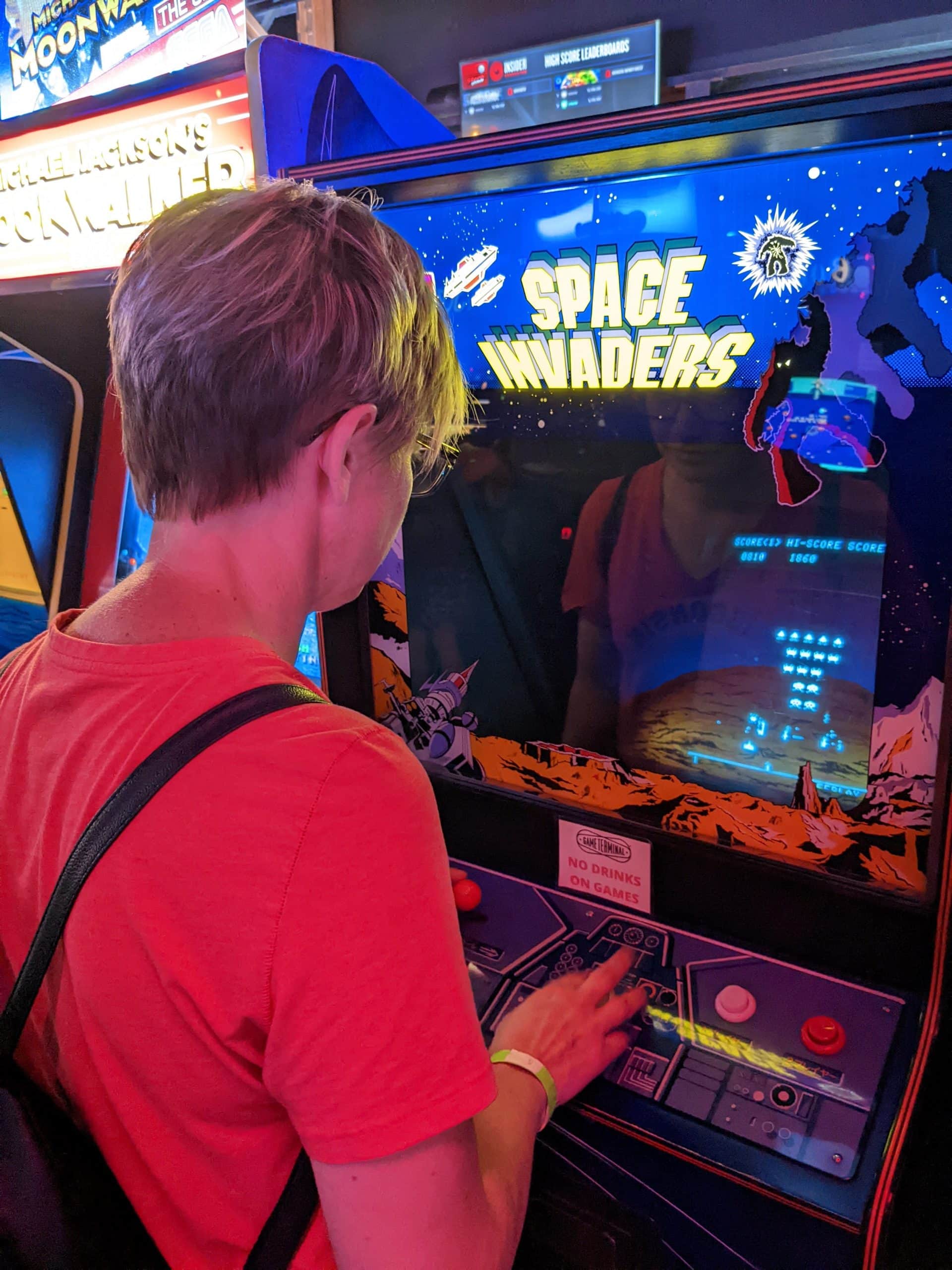 The Game Terminal is a wide open building that had hundreds of old-school arcade games and pinball machines. I was shocked to learn that there was no entrance fee to get in and most of the arcade games were free, while all the pinball machines were $1/play. We walked through the place together and grabbed a drink before we wondered on our separate ways to find games we both wanted to play. I spent a considerable amount of time on Space Invaders. I couldn’t even get past the first level! We had this game as kids on our old Texas Instrument computer and I know I used to be much better than I was on this machine. I also made several attempts at Donkey Kong, which I also felt like I used to be pretty good at. I got past the 1st level, but didn’t make it past the second. I think when I was a kid I might have got to level 8 or 9. I’m not sure how many games Tom played but he was like a kid in a candy store. He did spend a lot of time as a kid in arcades and was lucky enough to have Atari growing up so he was familiar with a lot more games than I was. I did watch him play Track and Field in which he told me he would crush the high score on the machine. Sadly he could only overtake 2nd place. This place also had a very nice outdoor game area with shuffle board, bags, ping pong, giant beer pong, and large Connect Four games. We tried to play a game of Connect Four but as we were just getting into it, the slide came loose and all the pieces dropped so we weren’t able to finish to prove that I was going to win!