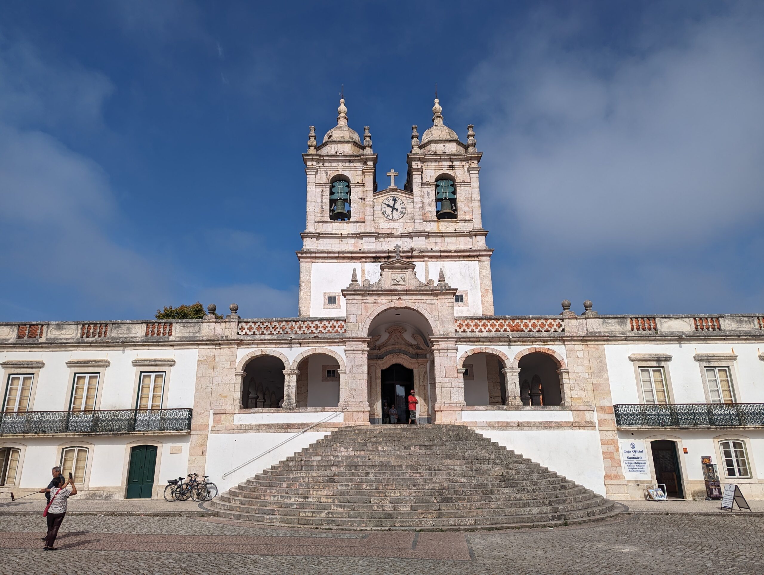 We pulled into the main square and someone directed us into a parking spot. We thought this was good fortune but as we got out of the car he asked for a small donation. So there it was . . . the first time we’ve been hit up since we’ve been here. We obliged and moved on. The Portugal guide book gave us some information on the Santuario da Nossa Senhora da Nazare that was located in the square and Ermida da Memoria chapel. There was an excellent viewpoint of Nazare and the beach that we had just spent the last couple of days at.