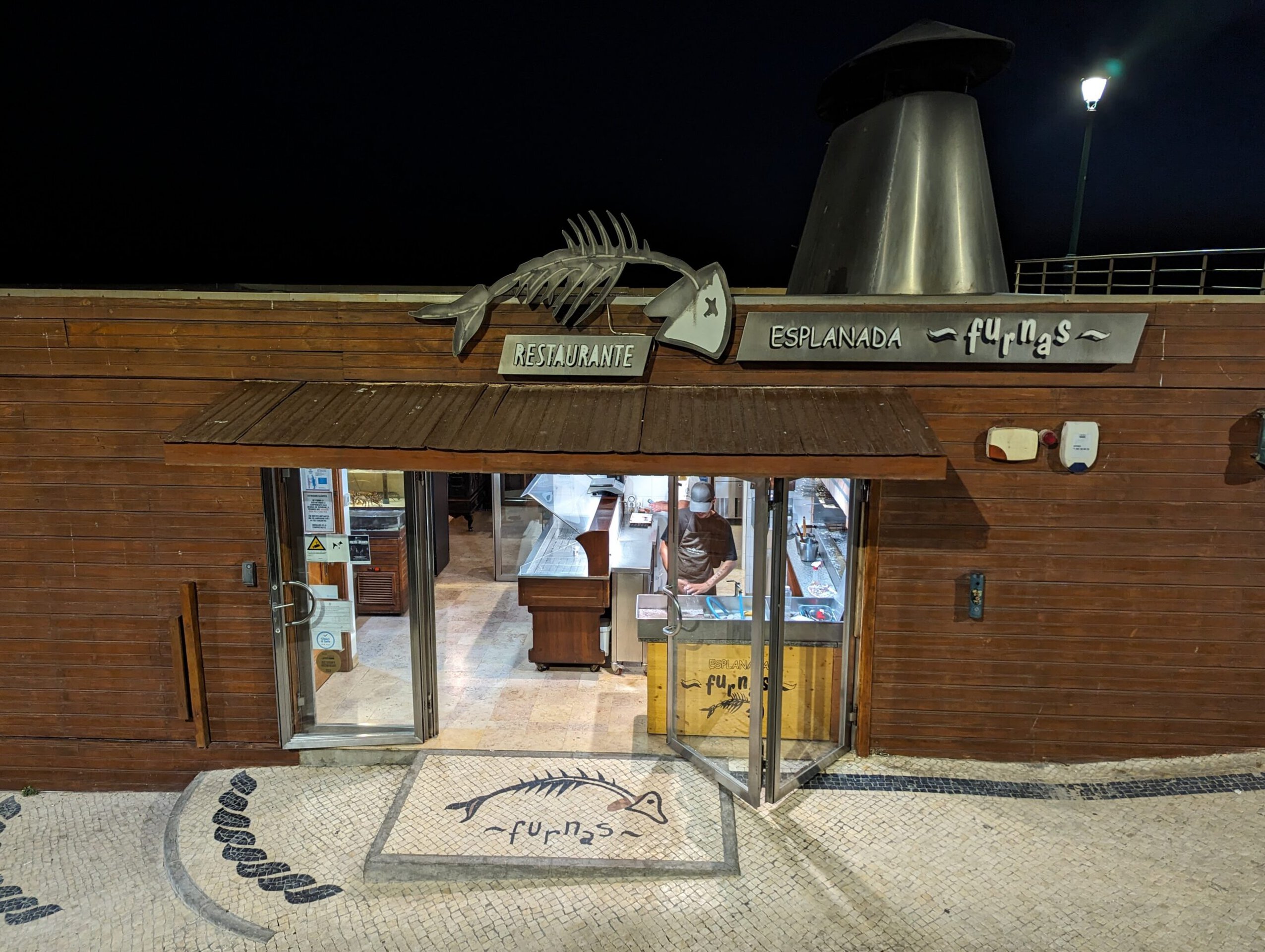I have never been to a restaurant where you pick out your meal before you even sit down. Walking in, just inside the door, there was a fresh fish case with the prices on the wall by the pound. We had no idea what we were doing, but the worker spoke English and pointed out the several different types of fish. We ended up picking a half of grouper (the other half was already gone). The worker also talked us into a baby lobster as an appetizer. Once we were seated we received menus to add on anything else we wanted for our meal. We had been thinking surf and turf so we also ordered a filet mignon. I was also going to order a side of vegetables, but once the waiter told us the fish came with potatoes we opted to just stick with what we had. Like many restaurants in Portugal/Europe there is plenty of time between courses and nothing moves fast. It was 20 minutes between the lobster course and the main fish course. The waiter brought the fish out whole and served us the fish at the table. It was more fish then I realized and I was really beginning to regret having ordered the filet as well. I only ate one of my three potatoes as I was waiting for the filet to arrive. Halfway through the fish and I was really kicking myself for having eyes bigger than my stomach and Tom and I started talking that maybe they did us a favor and forgot about the filet. By the time the waiter was clearing away the fish and our plates we really did believe we weren’t getting the filet and we couldn’t have been happier about it! In lieu of the filet, we ordered dessert (apple pie a la mode). When we finally got our check there was no filet on it and the total price was a lot cheaper than we had anticipated. We had no idea how many pounds of lobster or fish we ordered so our estimates were quite high. All in and all it was an excellent meal that we considered to be our 20th wedding anniversary meal. Thanks Mom!!