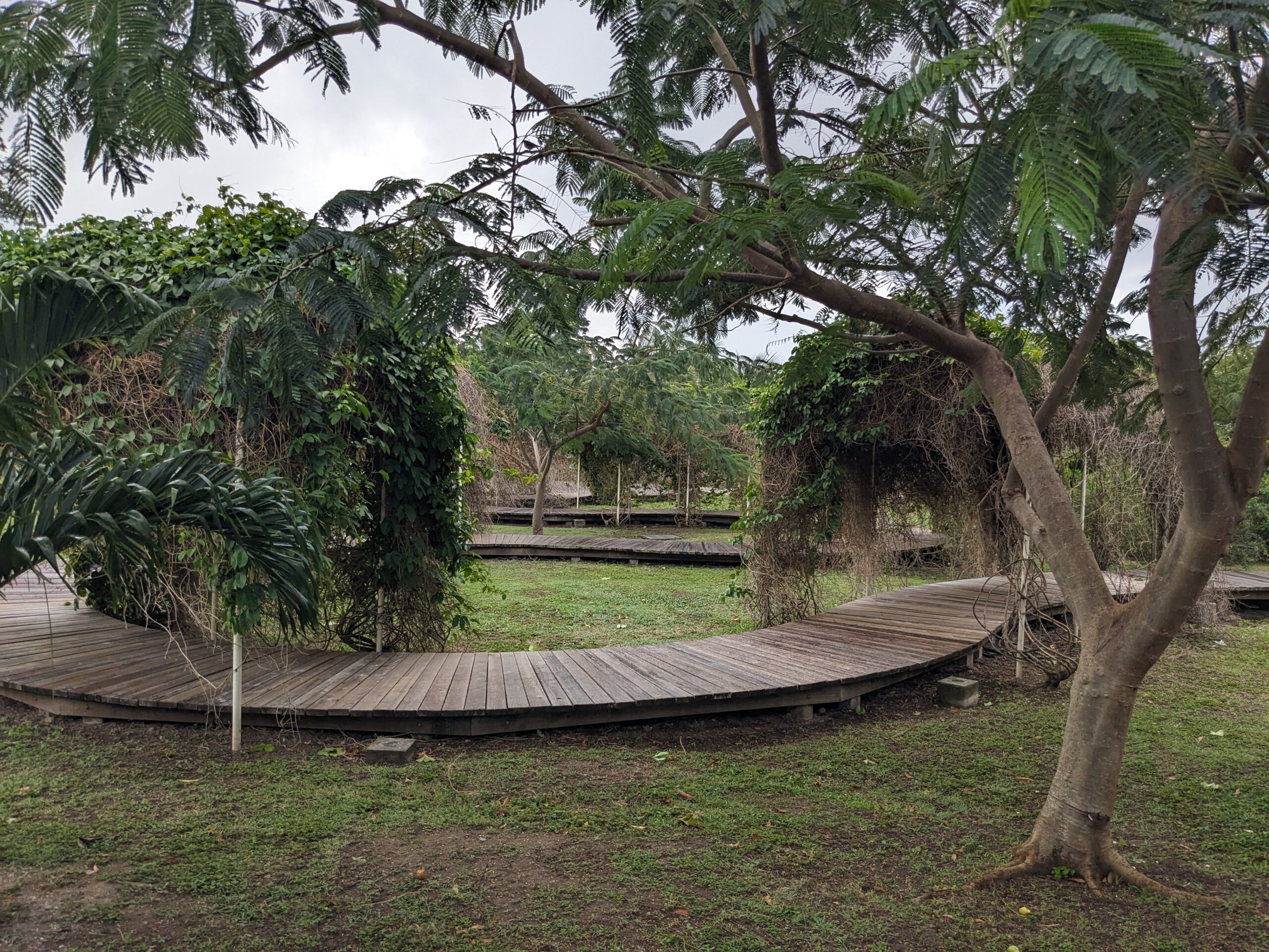 From the Bath House we went to Pinney’s Park for another cache in a new park. The cache was hidden underneath a neat curving boardwalk. I enjoyed my stroll on the meandering boardwalk. At this point it had begun to mist/rain. The second part of the plan for the day was to hang out on Pinney’s Beach for the afternoon, but since it was raining Tom agreed that I could do a couple more geocaches.