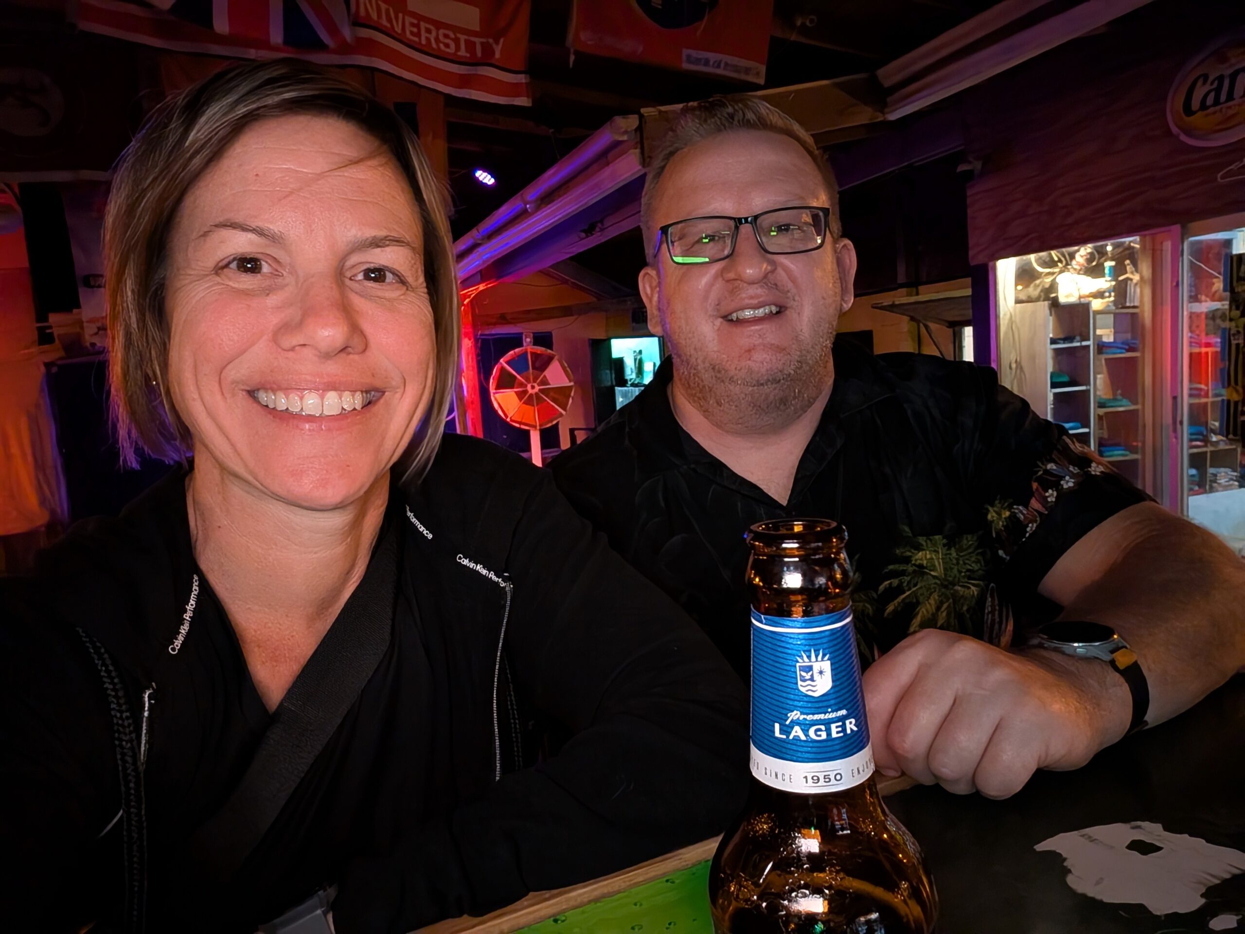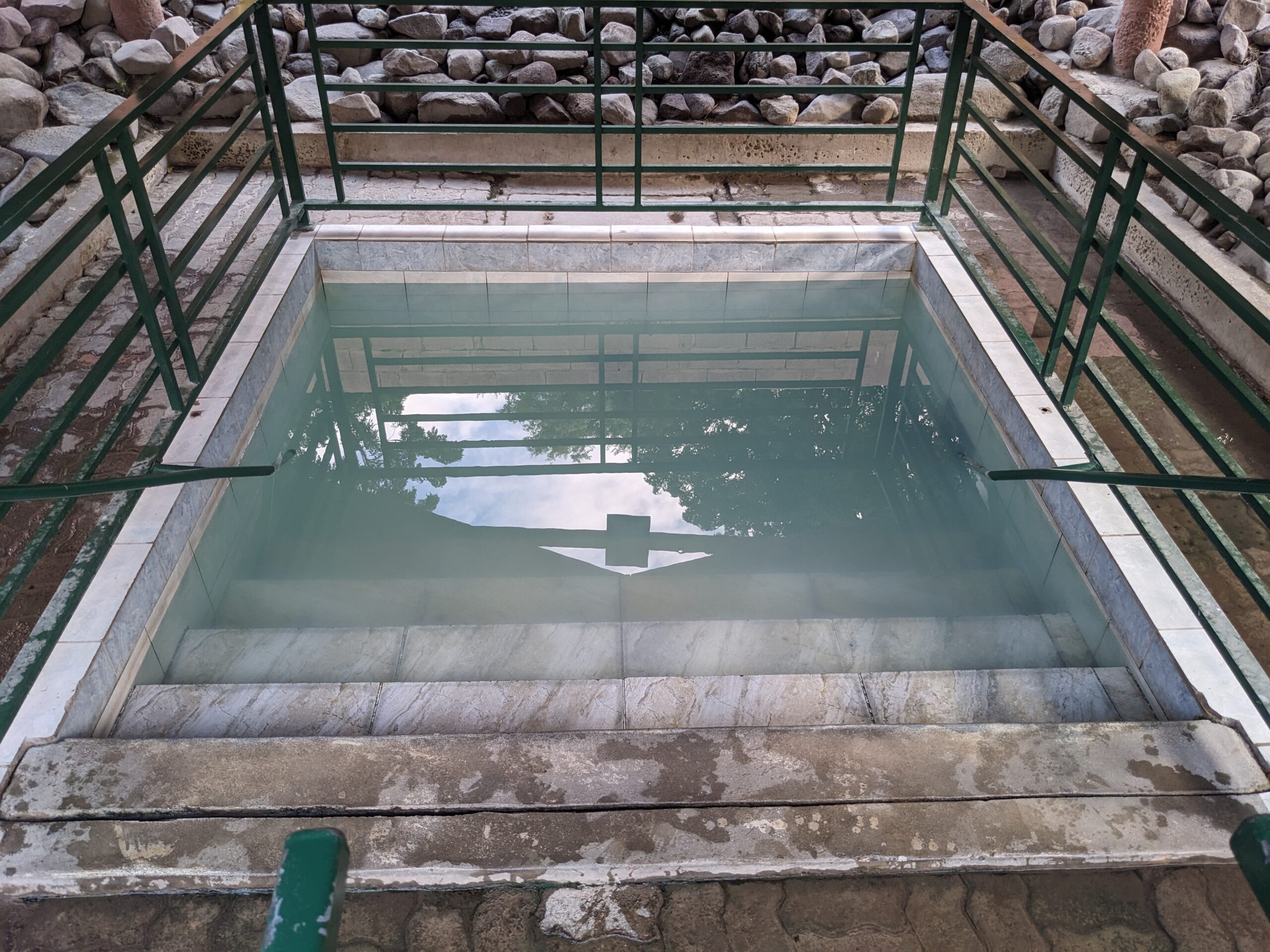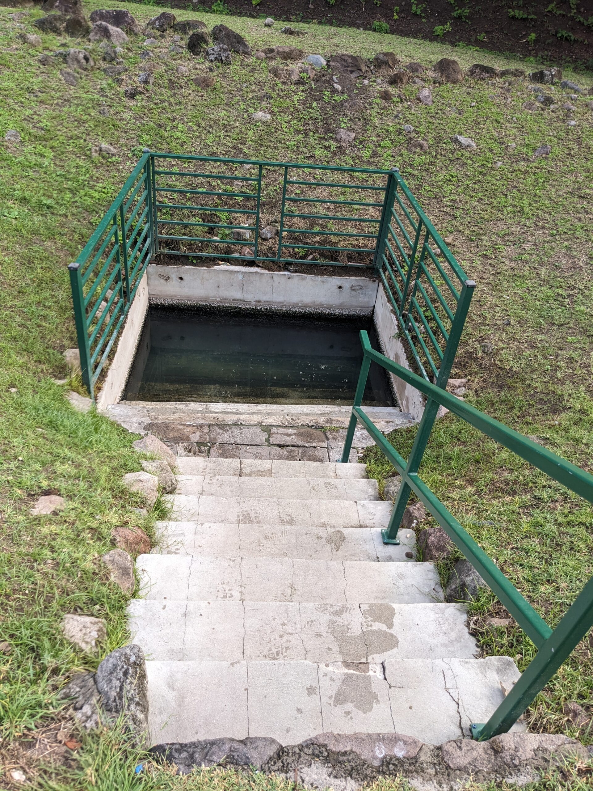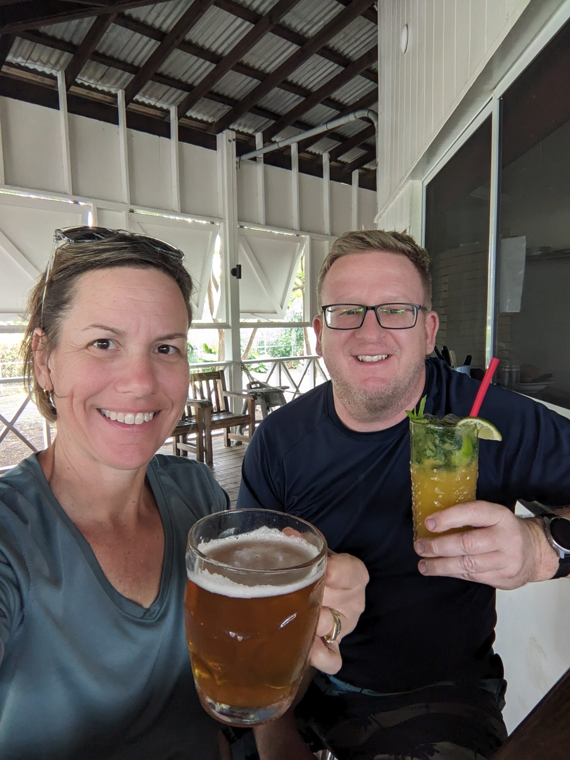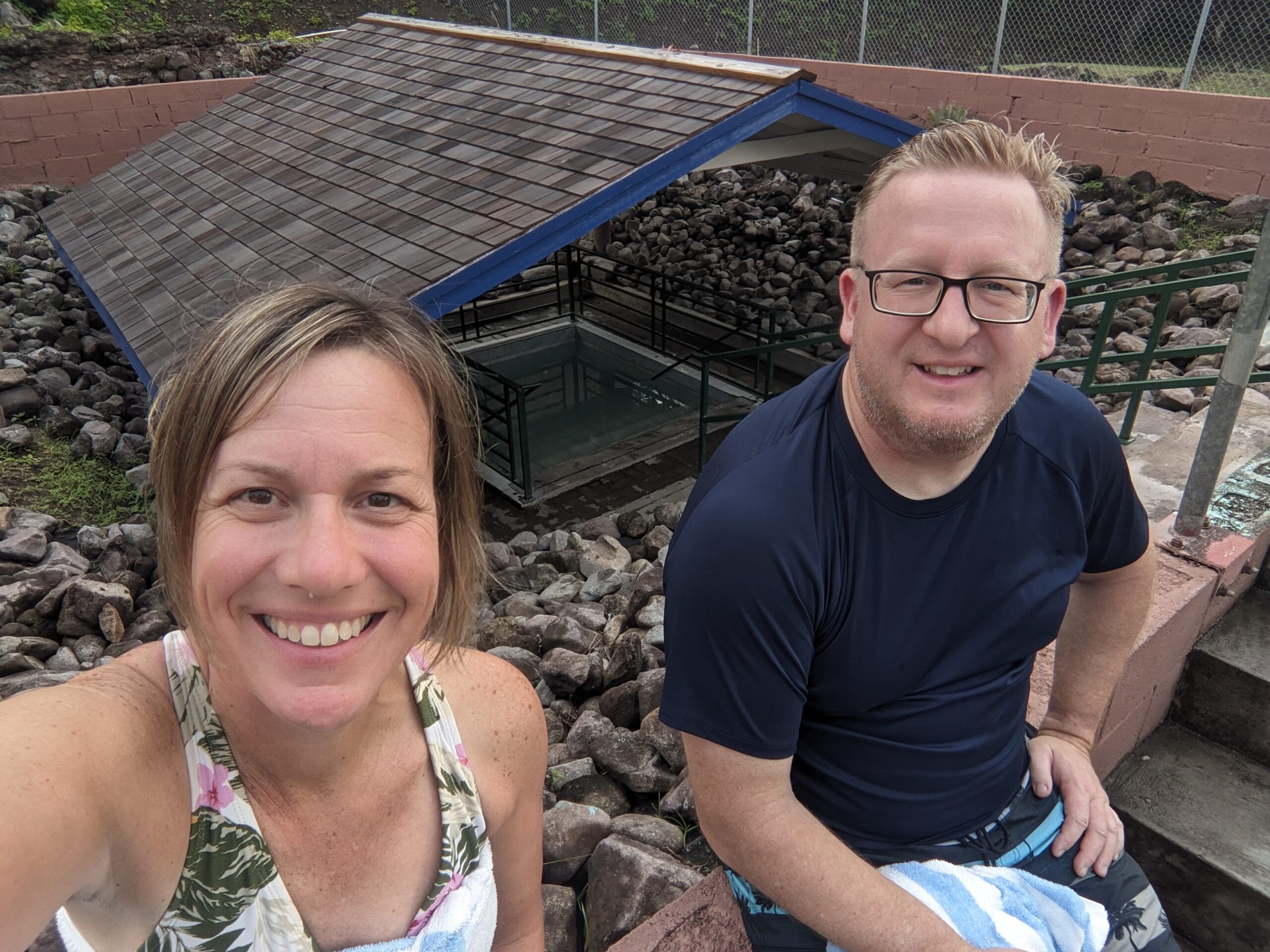 We headed back to Pinney’s Beach but it had really started to rain when we pulled in the parking lot. When it cleared up to just a mist I went down to the beach so I could get a look at it. The clouds certainly did not look like they were breaking up and I felt that a downpour could happen at any minute. The weather did not really provide us with the beach afternoon we had anticipated. Instead we decided to go to the Nevis Peak Brewery that we had passed on the road to the beach. We were going to share a flight, but 2 of the 4 beers we wanted to try were not available so instead I got the Nevis Pilsner and Tom had a mojito (at a brewery . . I know but he said it was actually a very good mojito). While sitting at the bar we talked to the bartender about things to do on a rainy day on Nevis. She said there wasn’t much but she mentioned the hot springs. Funny that we had talked about going there earlier ourselves. She told us it was free and open 24/7! We made a plan to finish our drink, head to the springs, and then catch the 5:45 taxi back to St. Kitts. We were originally planning on eating dinner on Nevis and didn’t think we would leave the island till after 8:00, but with the weather being a downer and us still full from lunch, and then remembering that the Marriot has Bingo on Thursday’s night we decided to go back early.