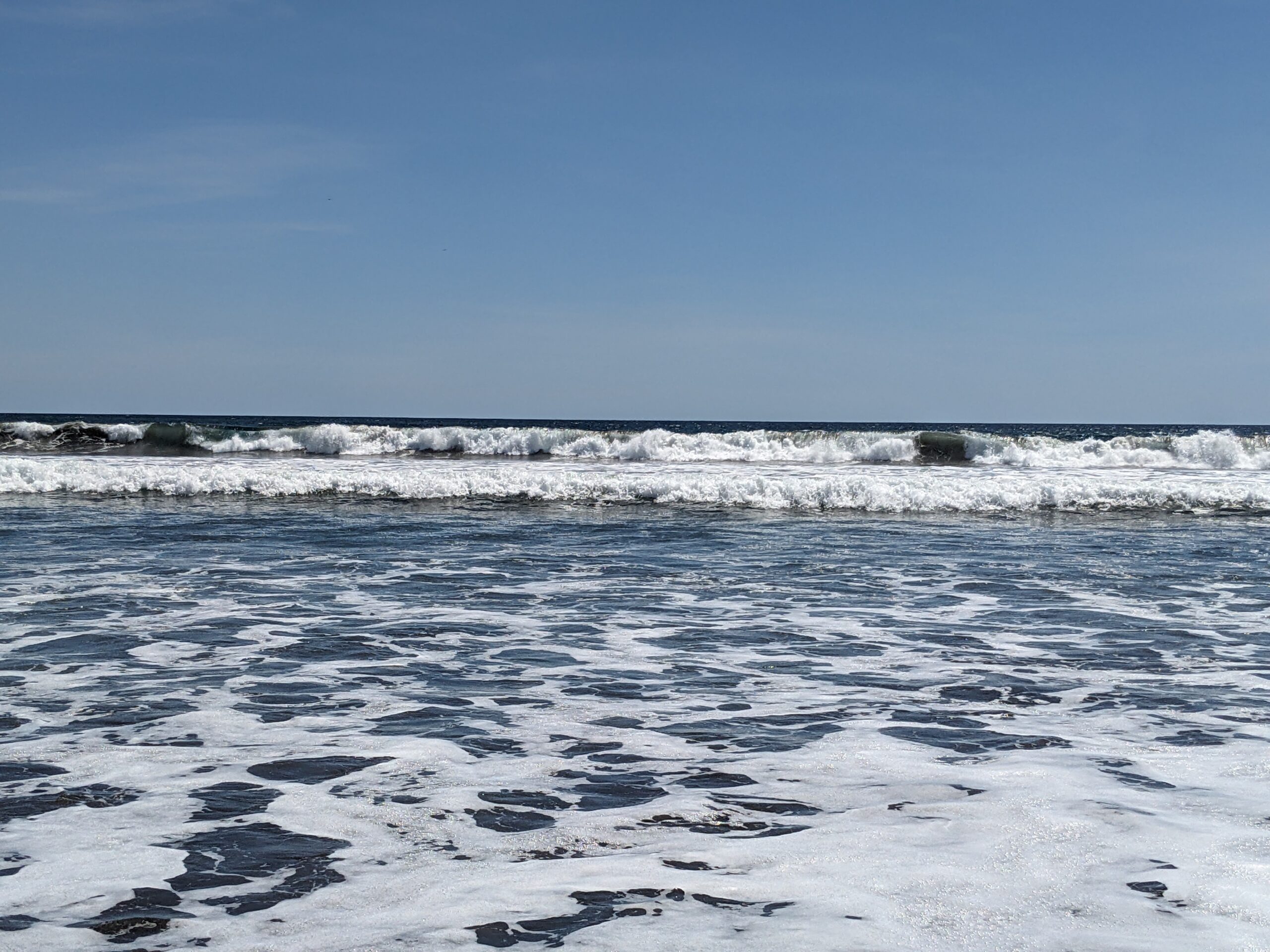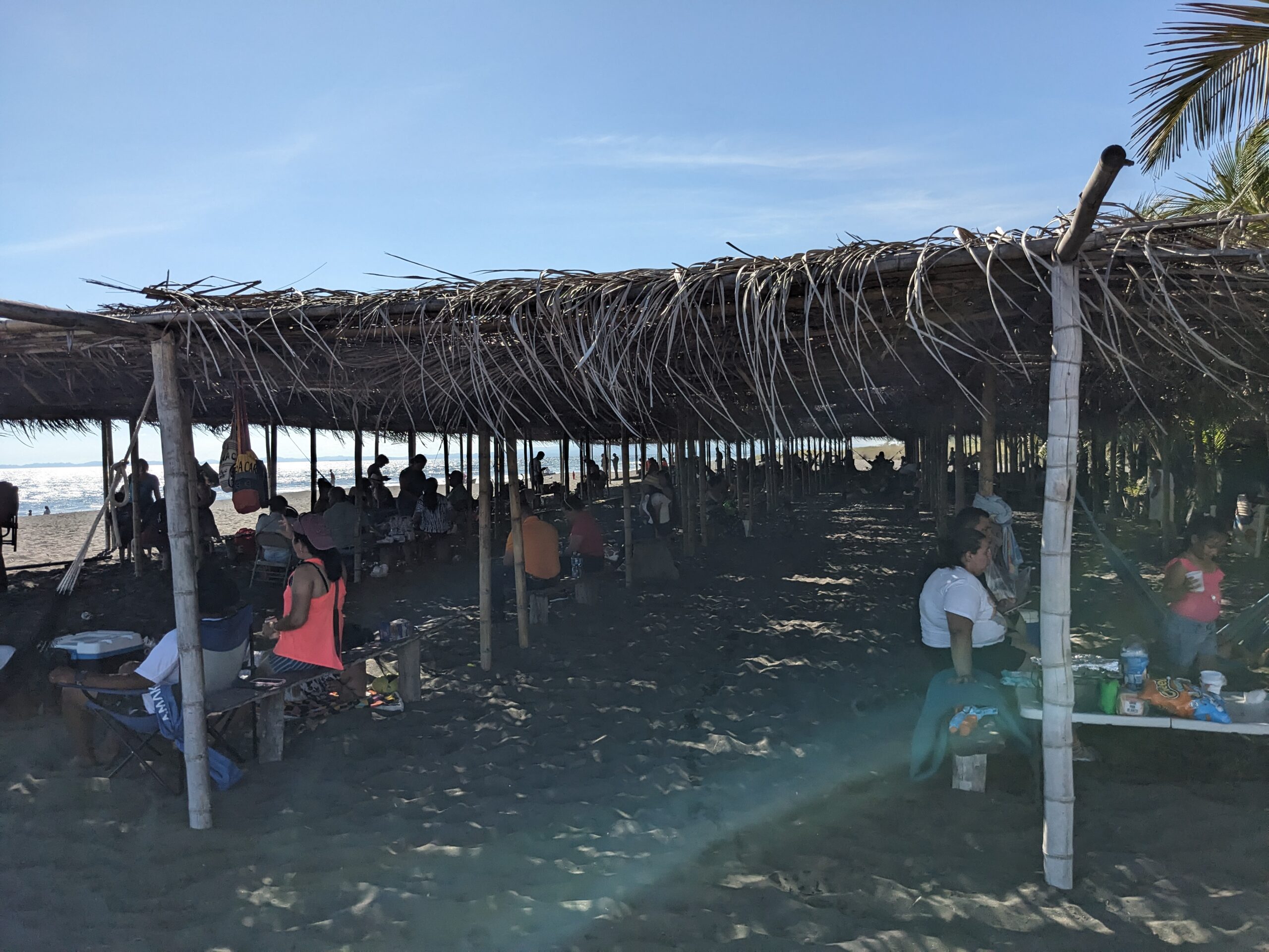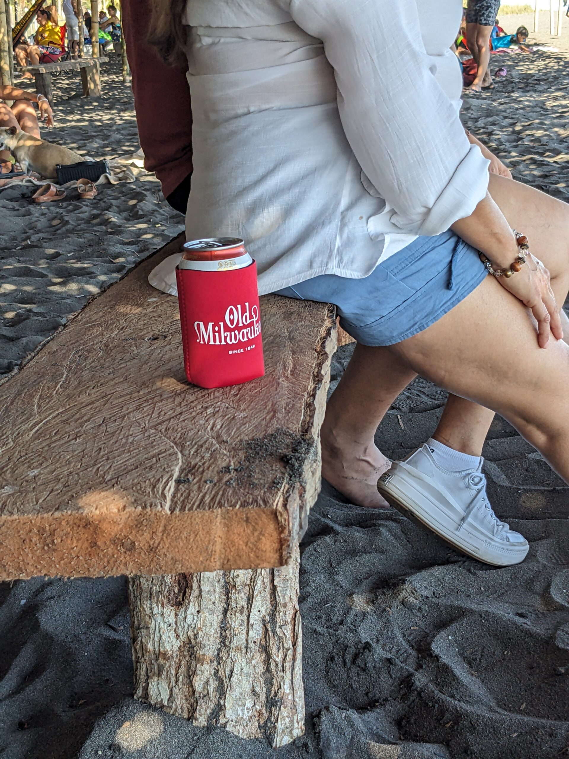 We got going about 1:00 and Linda, Laurie and I drove about 45 minutes to Playa Barqueta to check out the closest beach to where we are staying. Somehow it felt even hotter at the beach. There is not much development along the beach as it is protected for the benefit of four species of turtles. The beach stretched on for as far as the eye could see and longer. It was a a great beach to walk and the water felt warm. There were huge waves crashing to shore, but not a lot of beach treasure to be found. I was surprised that we even found 2 sand dollars because that was about all we came across. Linda, Laurie, and I walked for about a mile before Linda decided she had enough and turned around, but Laurie and I continued to walk for probably another mile before we turned around. We got back to where we started having walked 10,000 steps and found Linda relaxing under a shaded area. I was surprised when I glanced over to the people sitting next to us and saw they were using Old Milwaukee koozies. Having our fill of the beach we drove back to pick-up Pete and went out to dinner.