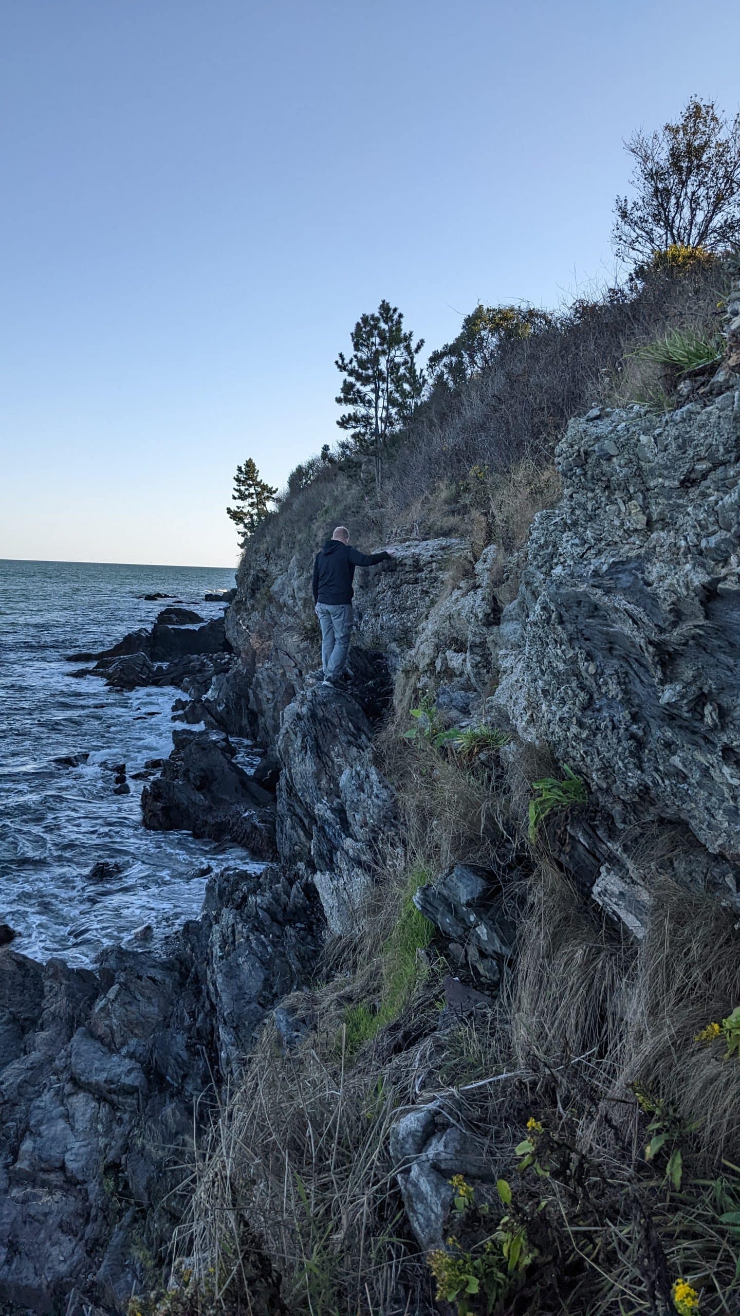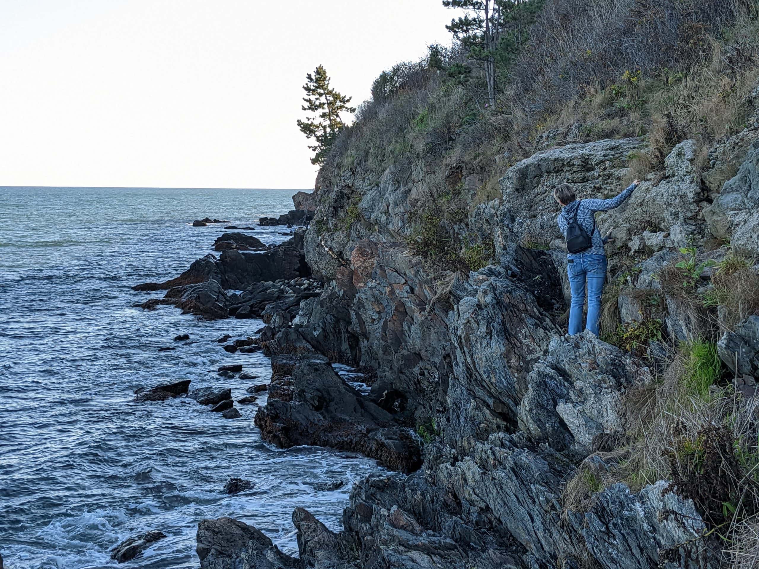 On our way to our next stop, another lighthouse called Point Judith, I saw a turn-off for a scenic overlook so I stopped to check out the view. The view was ok, but since I stopped I pulled out the geocaching app and saw I had practically parked on top of a cache. I got out and made the find of the reflector magnet cache on the guard rail. At Point Judith we parked and got out, but saw that the lighthouse was locked under a gate as an active place under the Department of Homeland Security so we could only view it from afar. We didn’t think the view was so great so of course I pulled out the app and saw there was a cache nearby that we could drive too. Now this was the spot to get the better view of the lighthouse. Thanks geocaching! I was able to quickly make the find. Tom had originally stayed in the car at this spot, but once I saw what a nice cache this was I wanted to drop the last travel bug my mom had given me, so I went back to the car to get it and told Tom he should come out and check out the view. We snapped some pictures and we were back on our way.