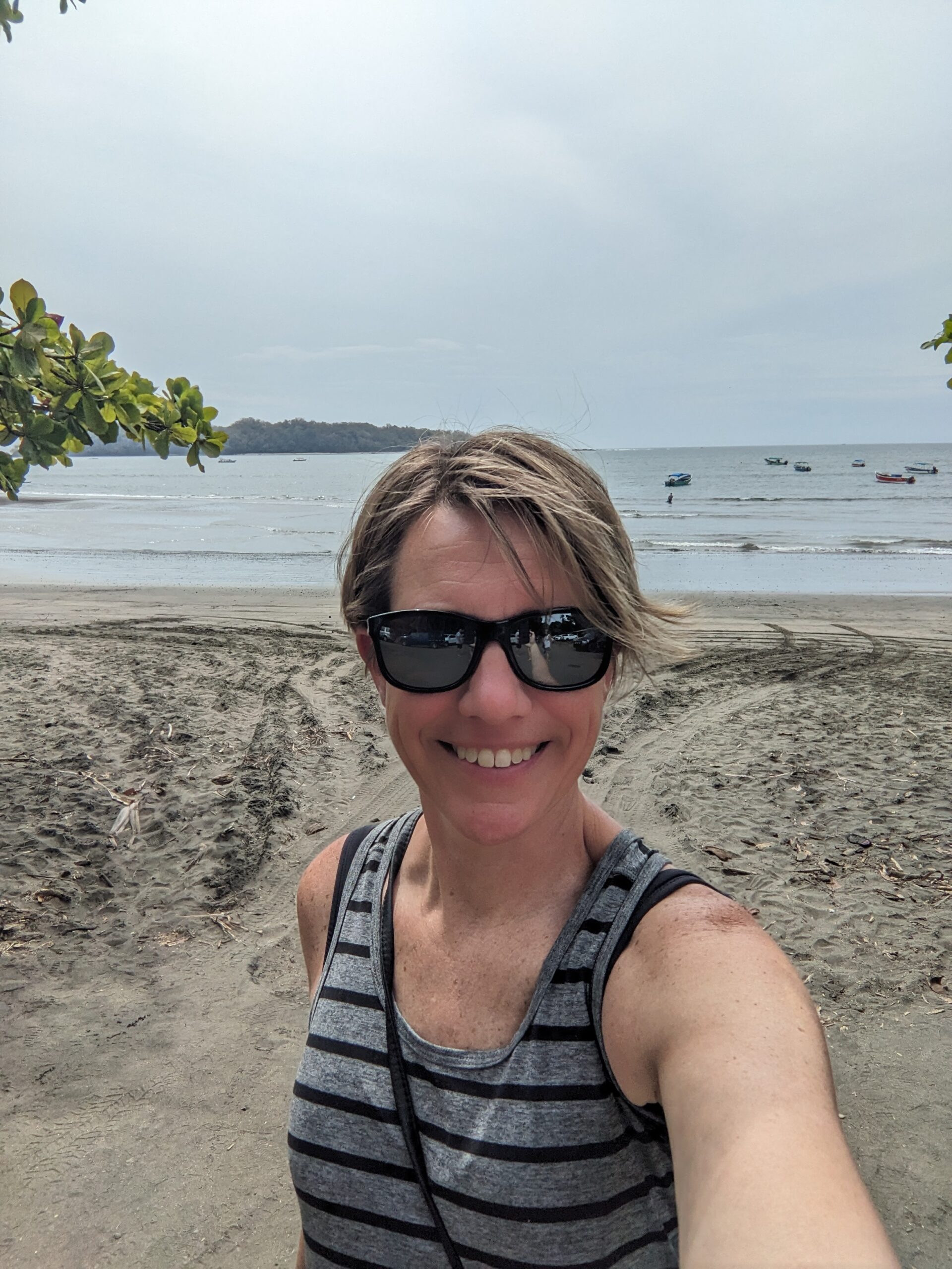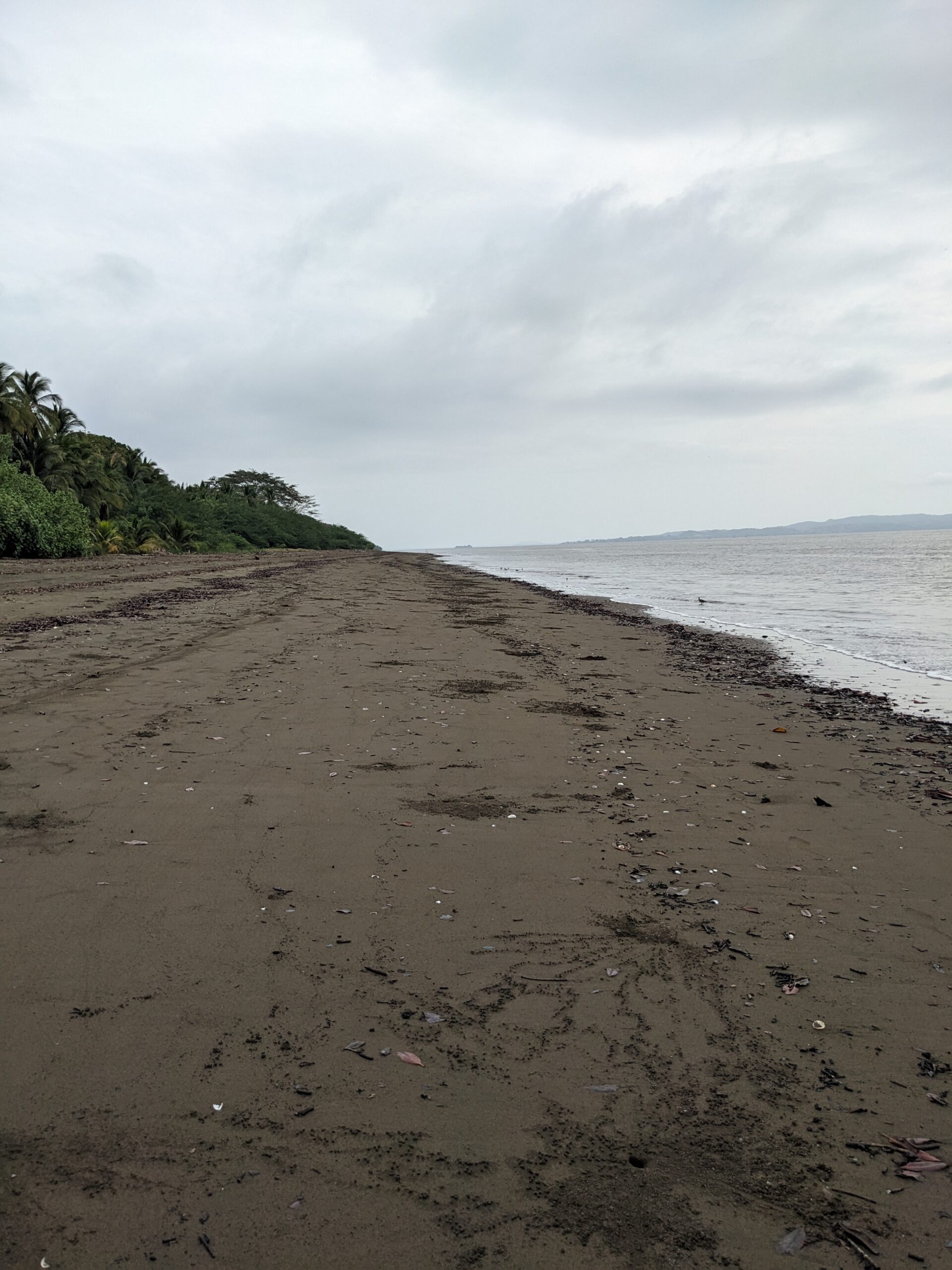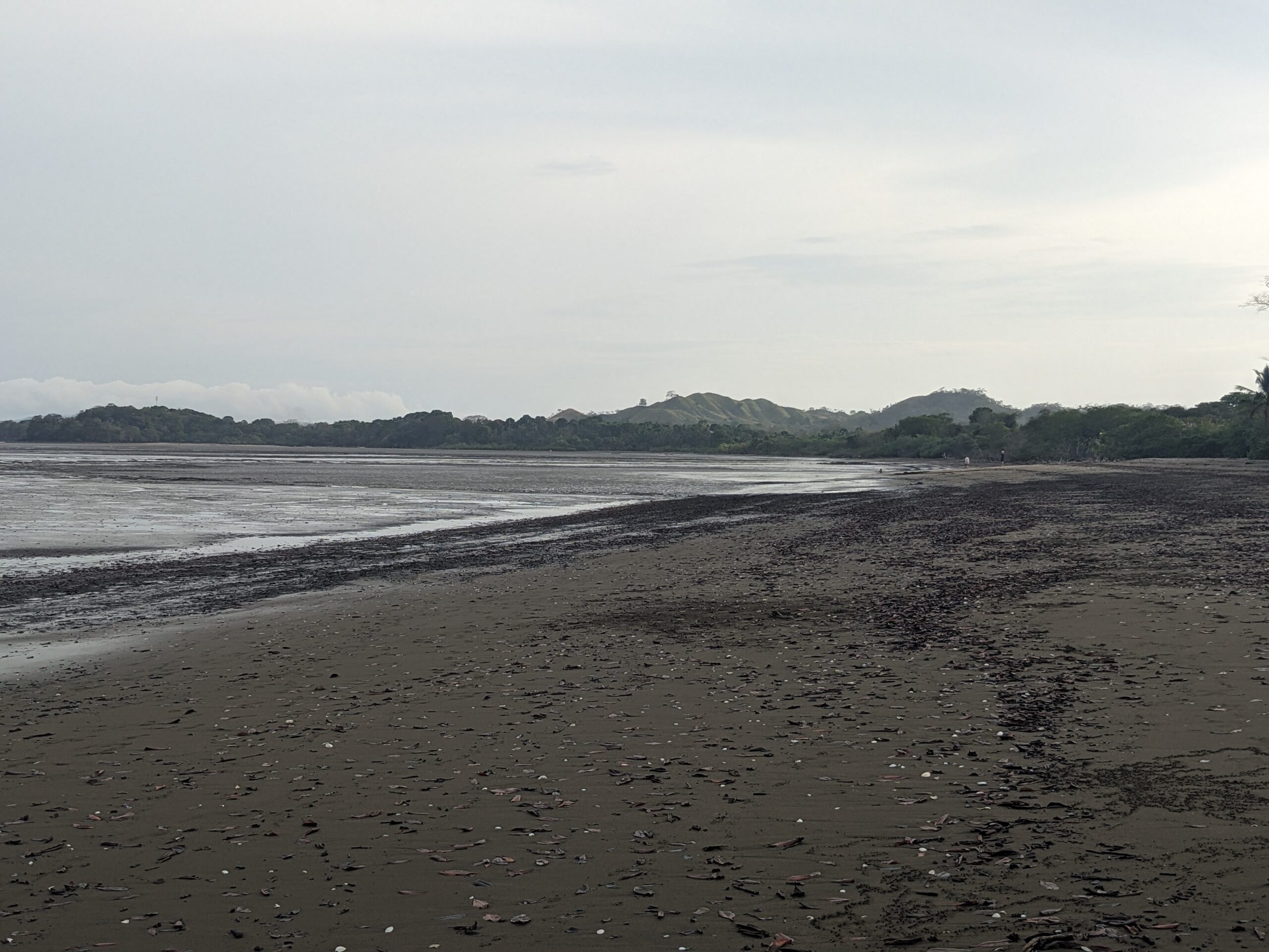 After lunch we walked the beach (Playa Santa Catalina). The tide was out and I did find several pieces of clear sea glass and 1 piece of brown sea glass. There was a lot of ground to cover and I could have been out there for hours scoping it out, but kept myself under control. We headed back to our house which is only 11 kilometers away but takes 30 minutes to drive because the roads are filled with pot holes (Laurie named it pot hole hell). It was about 5:00 when we got back and I felt like I could go for some more beach walking so I headed back down to the beach. The tide was out and the bay was once again completely empty of water. I went in the opposite direction as I had in the morning and walked until I came across a creek that I didn’t want to cross with my tennis shoes (and the sun was starting to set). Coming off the beach I got in a few more steps by exploring the area we are staying by continuing to walk the dirt road until it ended a short ways later. I turned around and headed back home, avoiding walking around a pond and the grassy area as I had seen an alligator in the grass when I walked to the beach.
