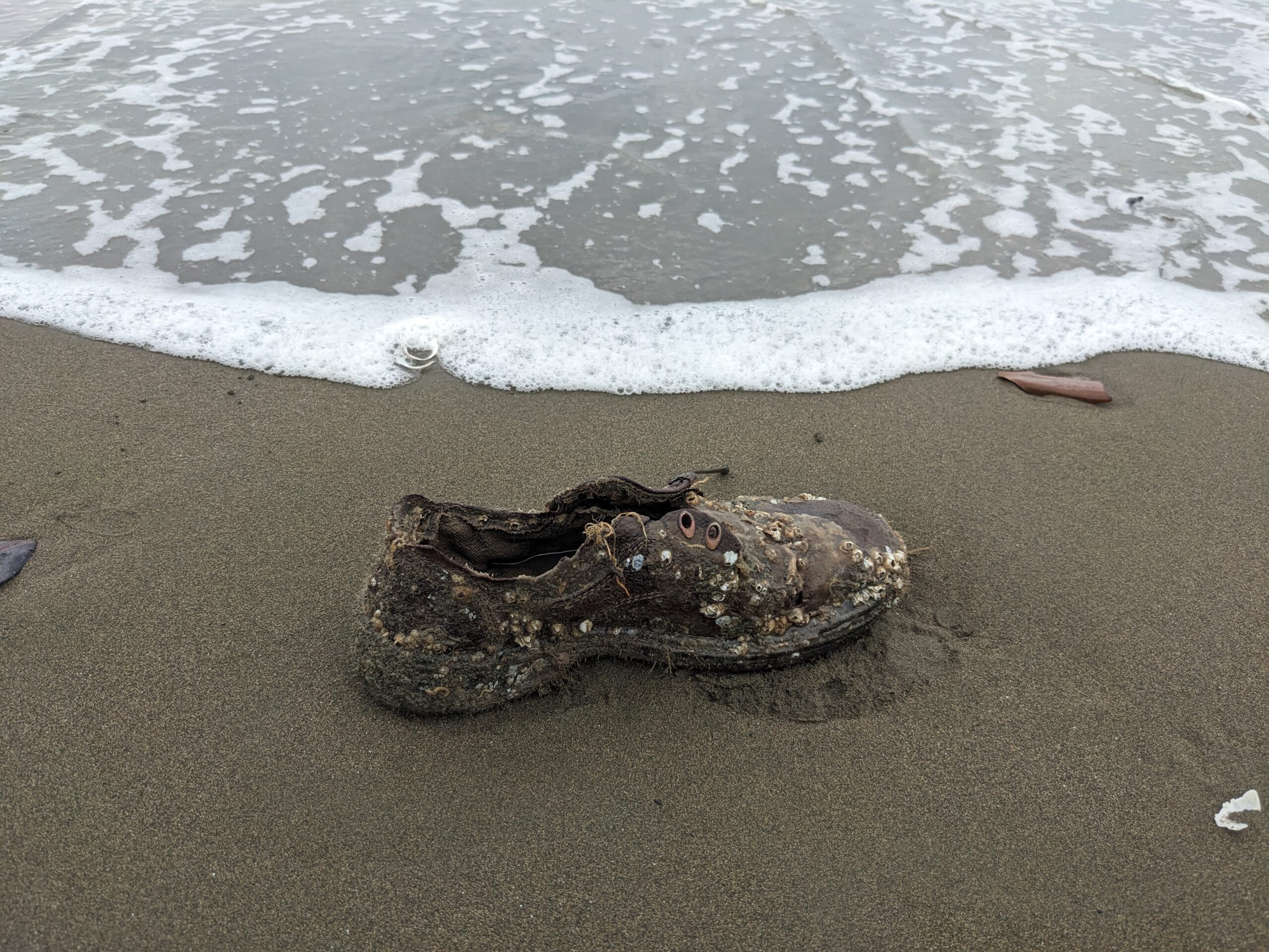 When I got done with my walk it looked like I had gone to war with the beach as I had sand all over me. I had picked up enough shells and sand dollars that I was starting to not be able to carry them (I fogot to take my sea shell collecting bag with me down to the beach), but I found a large dog food bag that had washed ashore so I used that. Since it was such a big bag I also picked up any garbage I had found along the way. For the most part, this beach did not have a ton of garbage as I have seen on many beaches all over the world, so it was quite manageable to pick up the pieces I did find. I did not pick up however, the shoe that looked like it had been part of the ocean for some time.
