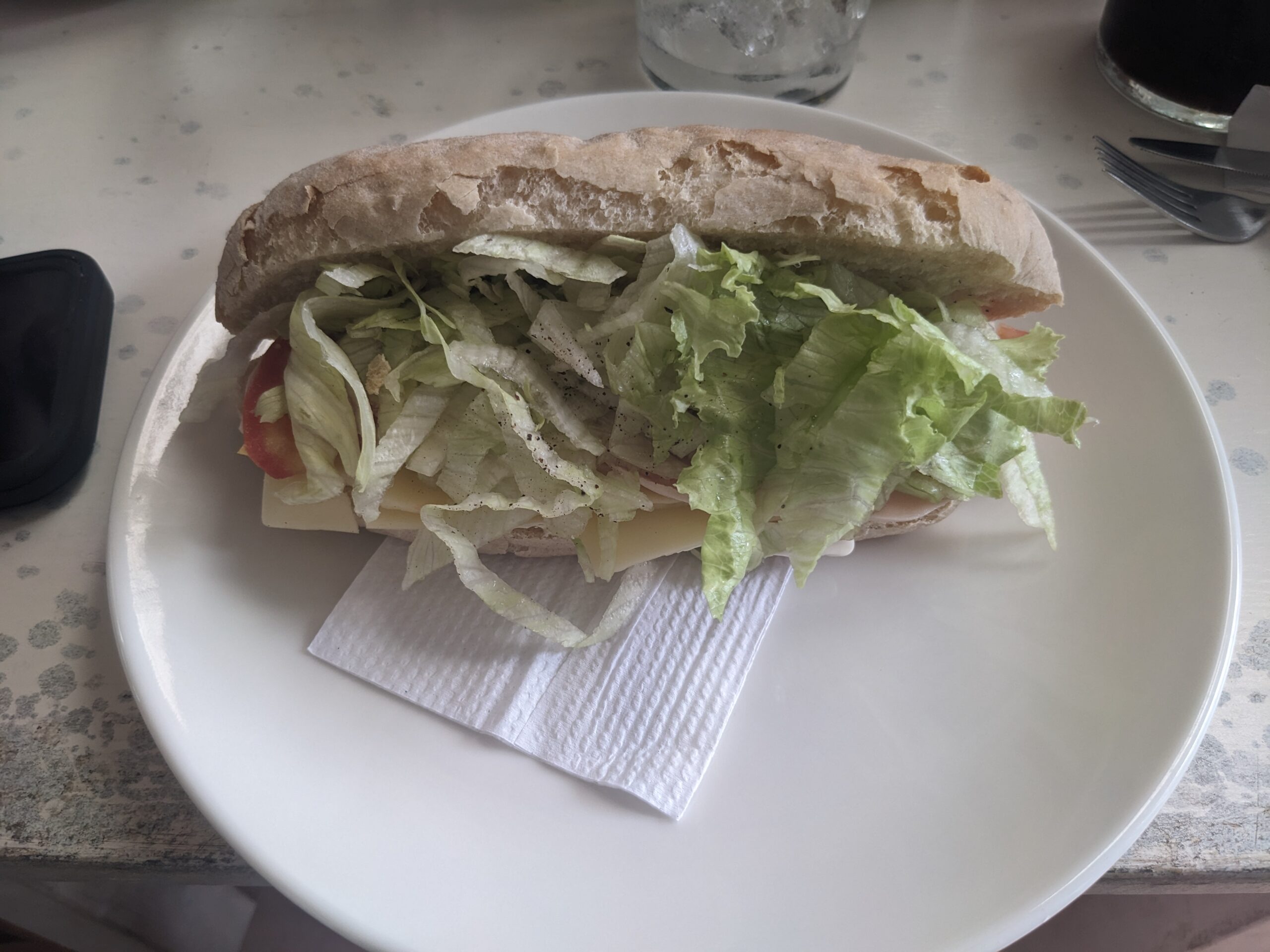 With the snorkeling tour secured, we set out to find lunch. Unfortunately I left the guidebook at the house so we couldn’t reference it’s recommendations. The first one we went to was closed (and upon reading the book when I got back was one of the places they recommended), so we we went to another (which I believe also ended up being recommended by the book). I had a ham and cheese sub sandwich. It was good, but not even close to Cousin’s or The Chocolate Factory.