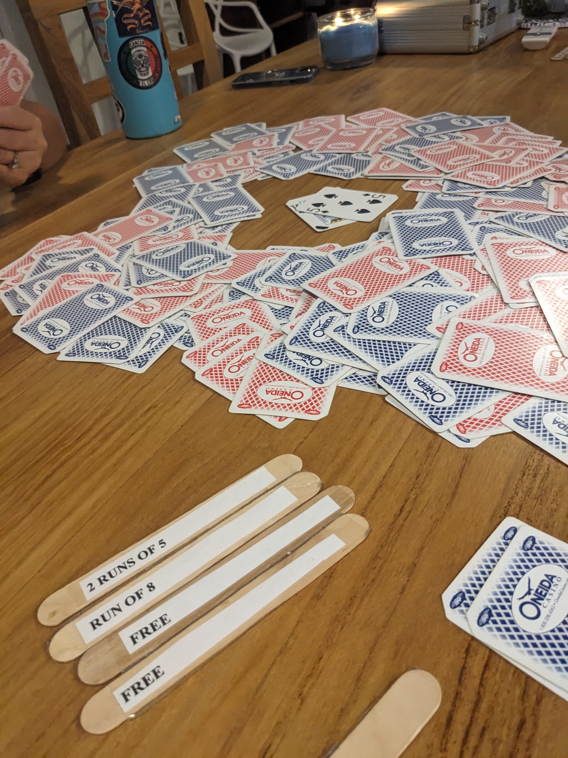 Back at the house we all did our own thing for dinner, which for me was snacking on Doritos. Linda, Laurie, and I played Sticks which is similar to Phase 10, except that every player has a different combination they are working since they have to get whatever is written on their stick. If you lay down you get a new stick. The first player to 7 sticks wins. Linda was the winner of the game tonight.