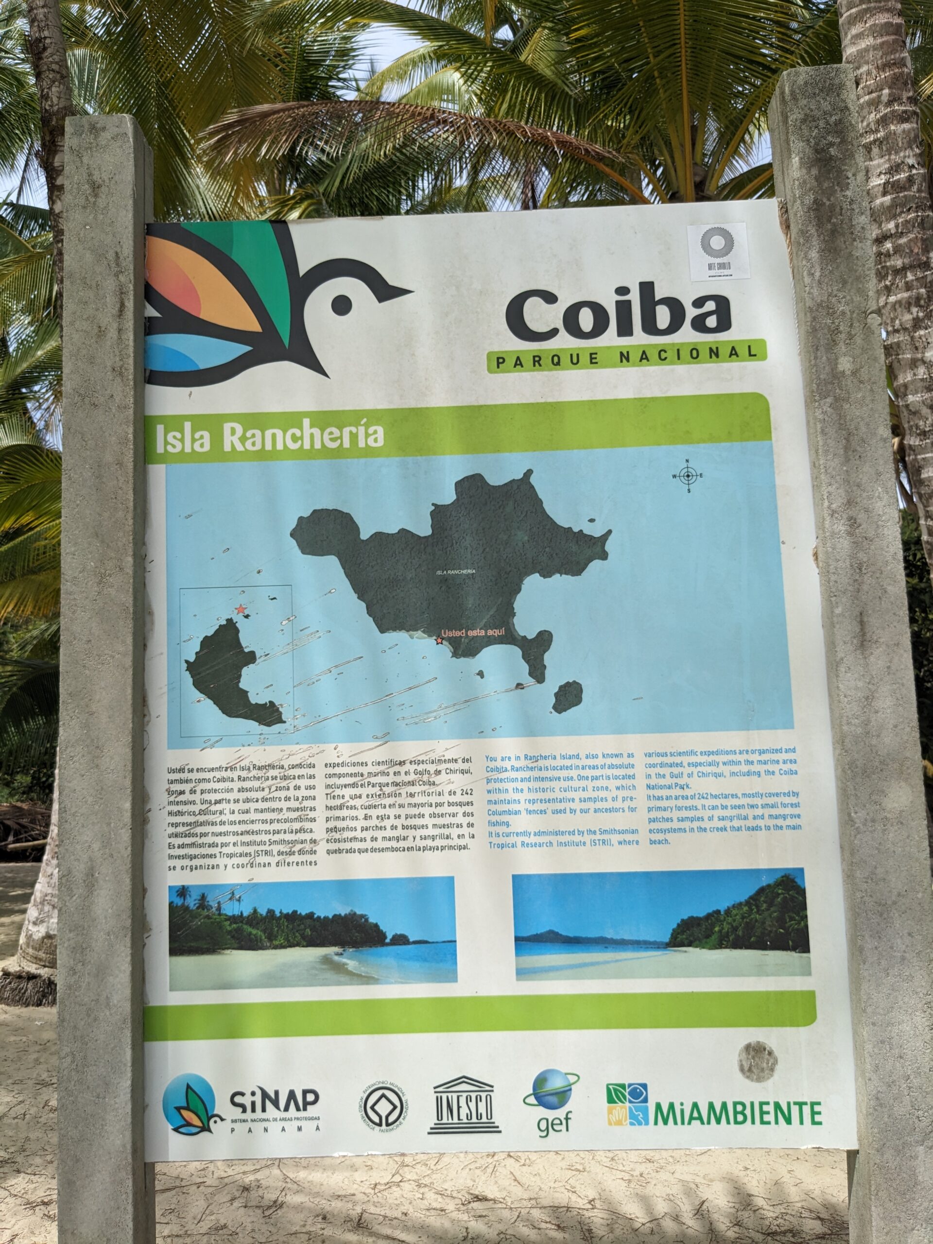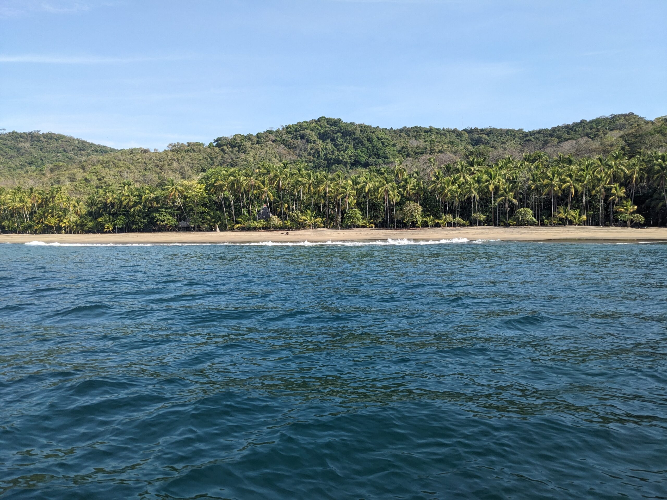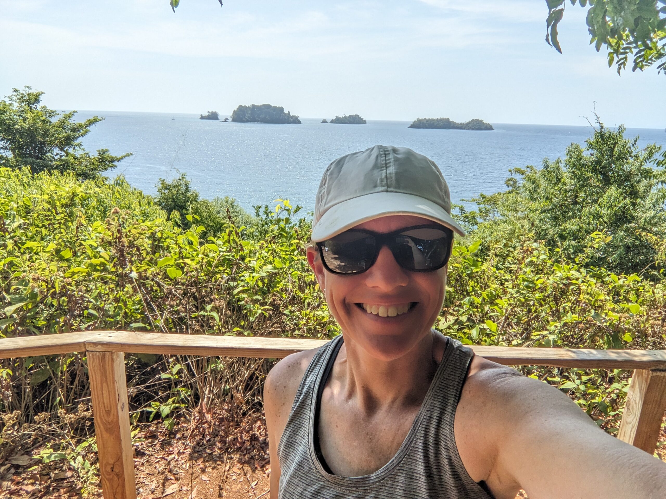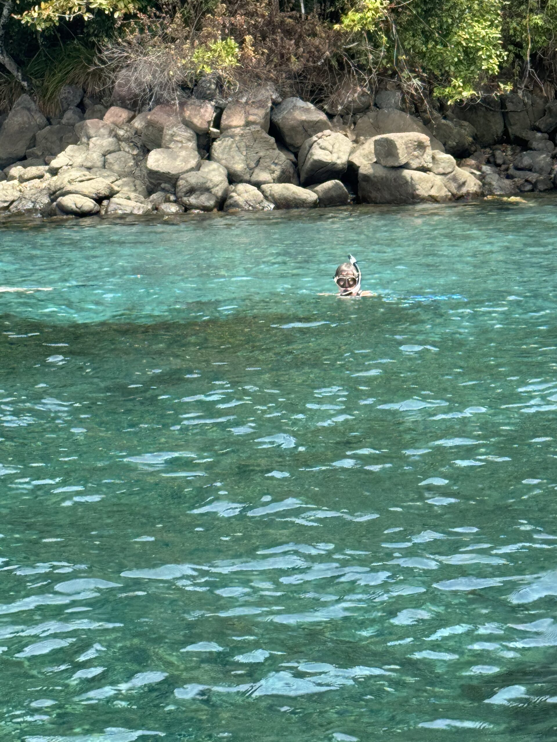 Our first stop was to Isla Coiba which is the largest of the islands in the park. Here we stopped in the visitor center and learned more about the island and the wildlife it contains. I learned some interesting facts like the island was used as a penal colony from 1919-2004 and that the crocodile population greatly declined because the prisoners ate them. We also did a very short hike up some very nicely constructed steps (I’m not being sarcastic, it was nicely done) and got a view of some of the other islands in the park that we would be snorkeling near. I also had time to wander the small beach for a few minutes and picked up a couple pieces of sea glass.