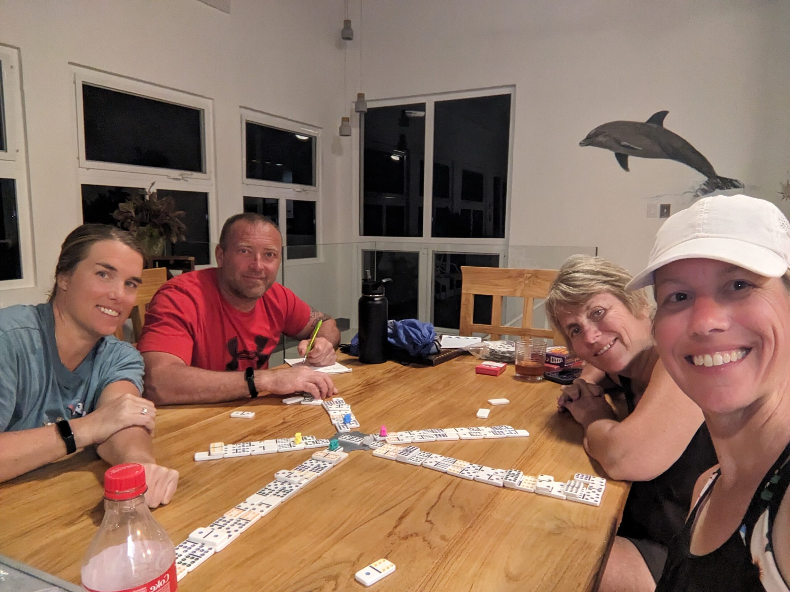 With dinner complete it was time to pick what game we were going to play. I suggested Mexican Train since we can’t take the dominoes with us. It was a close competition between Linda and myself, but tonight I pulled out the win by 2 points!