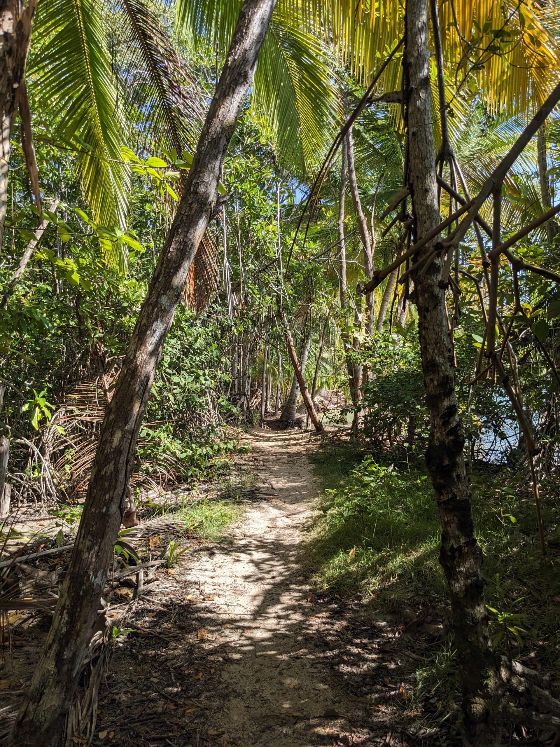 I read my book on the deck as we waited for Pete and Laurie to get back. They had walked approximately 7 miles round trip and were pretty tired when they got back and wanted to rest before we headed out. We left around 2:30 to hail a cab to take us to Starfish Beach. I think we had to wait about 5-7 minutes before a cab drove by, but eventually one did and he agreed to take us to the other side of the island to the beach for $25. This taxi driver drove as if he was in the Indy 500. We were flying all over the place. I think he was doing 75 KPH when the speed limit was 30 KPH. No police around to stop him! He dropped us to the point where cars could go no further and we hiked the 20 minutes along a nice trail running along side the ocean to the beach.