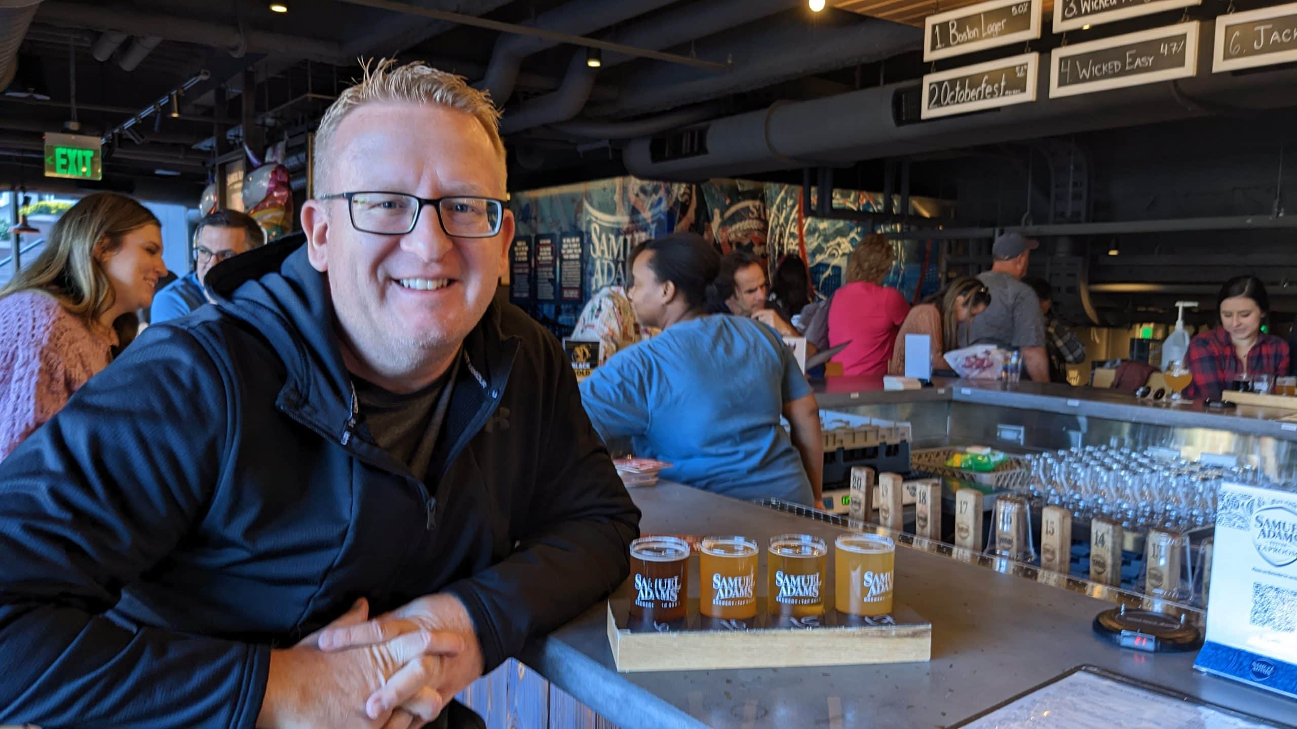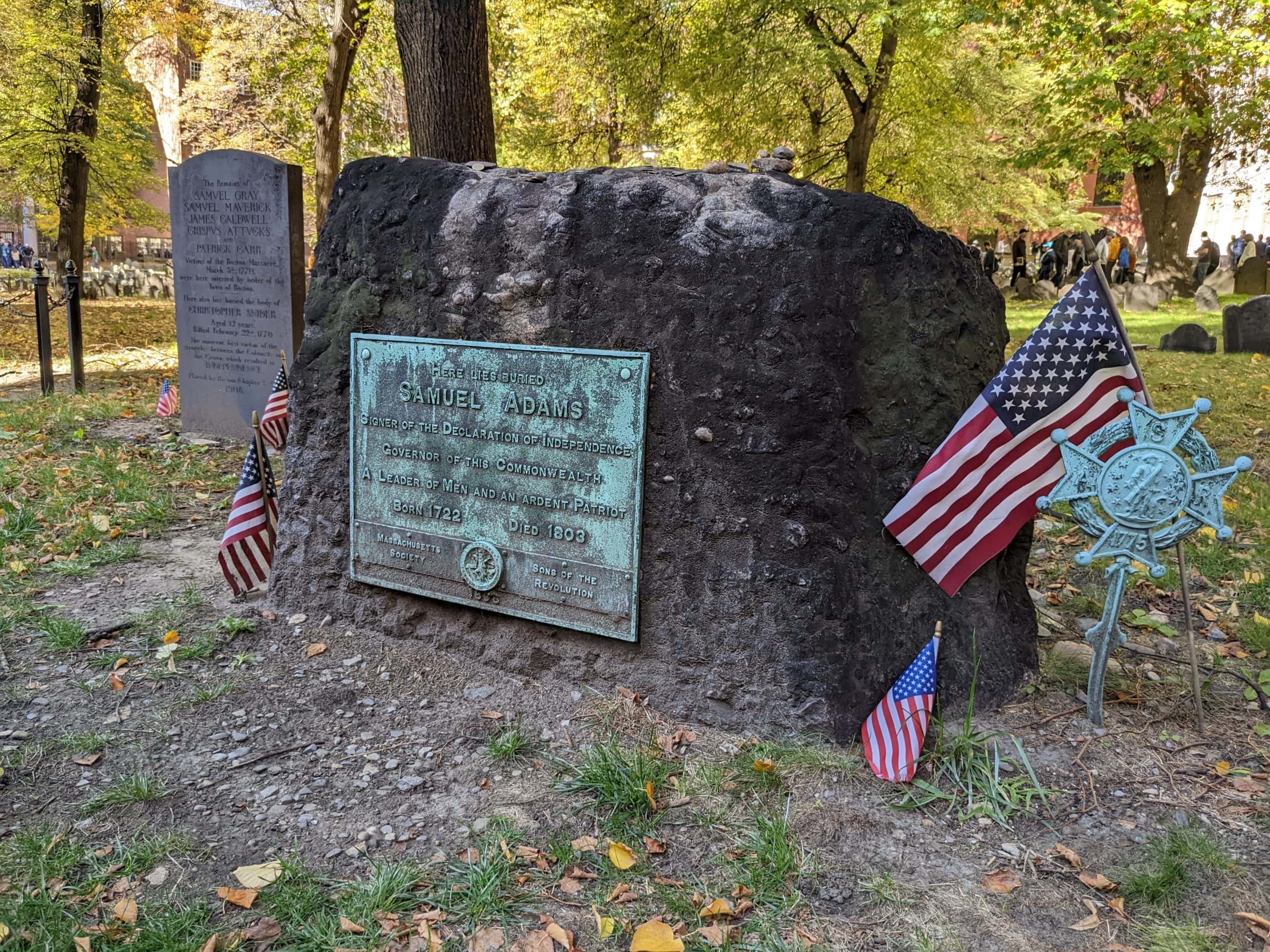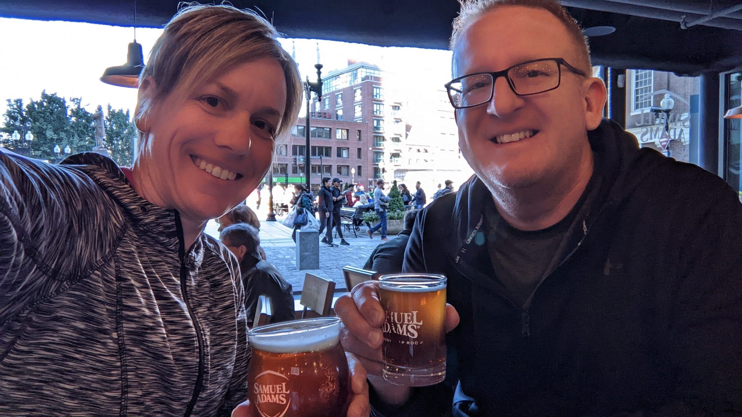 There were a ton of people around and we could see that guided tours started here as well. We went inside of the Visitor’s Center and decided not to do a guided tour and instead bought the official Walking Guide so that we could give ourselves a self-tour. As we went along the trail we were happy with the choice of doing it on our own. The groups were huge and it seemed like with that many people in tow that it would be hard to hear or find yourself at the back of the pack. At the Old South Meeting House you could go inside for a fee of $15, but we didn’t think we would do that until I overheard someone say something about a military discount. I popped in and found that it was completely free for military, so we went inside and viewed the museum pieces and the interior of the building. It was also free for us at the next stop at the Old State House. I’m glad we were able to go inside and dive a little deeper into the history of the places, people, and events of the Revolutionary War. At Faneuil Hall we decided it was time to take a break and grab lunch. The Samuel Adams Tap Room was right there so we waited in a short line for security and were seated at the bar in no time. Tom ordered a flight and I had a good ole Boston Lager. We also both ordered a panini sandwich which was just ok, but filled the space. It was nice to sit at the bar and just soak in the environment.