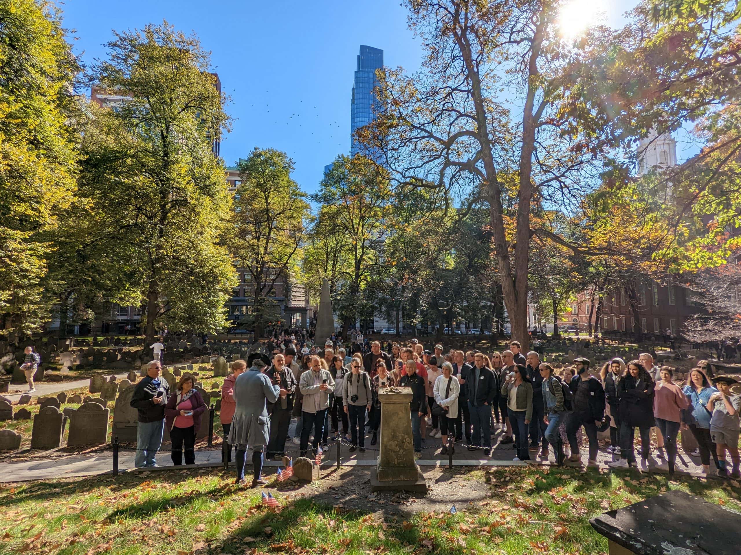 We woke up the latest we had thus far on the trip and got up about 8:30. It was nice to sleep-in a little bit, but then again we had gone to bed quite a bit later the night before. After getting ready, we made our way to the lobby to see if they had any brochures on the Freedom Trail. The Freedom Trail is 16 historically significant sites related to events of the Revolutionary era and beyond along a 2.5 mile urban walking trail marked with a red line on the streets of Boston. The hotel did not have any brochures, but the front desk worker printed a very small, black and white, almost illegible copy for us. He told us what T (subway) stop we needed to go to the starting point. The T is right next door to the hotel so we figured out how to buy a day pass and made our way to Boston Commons. It was not a long trip on the subway and was only 4 or so stops away. When we came up out of the subway we were right at the Visitor’s Center and the start of the Freedom Trail.