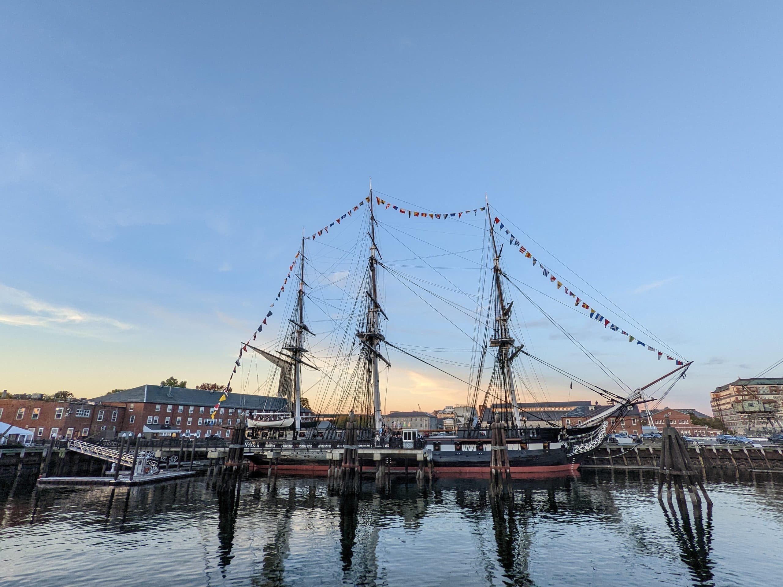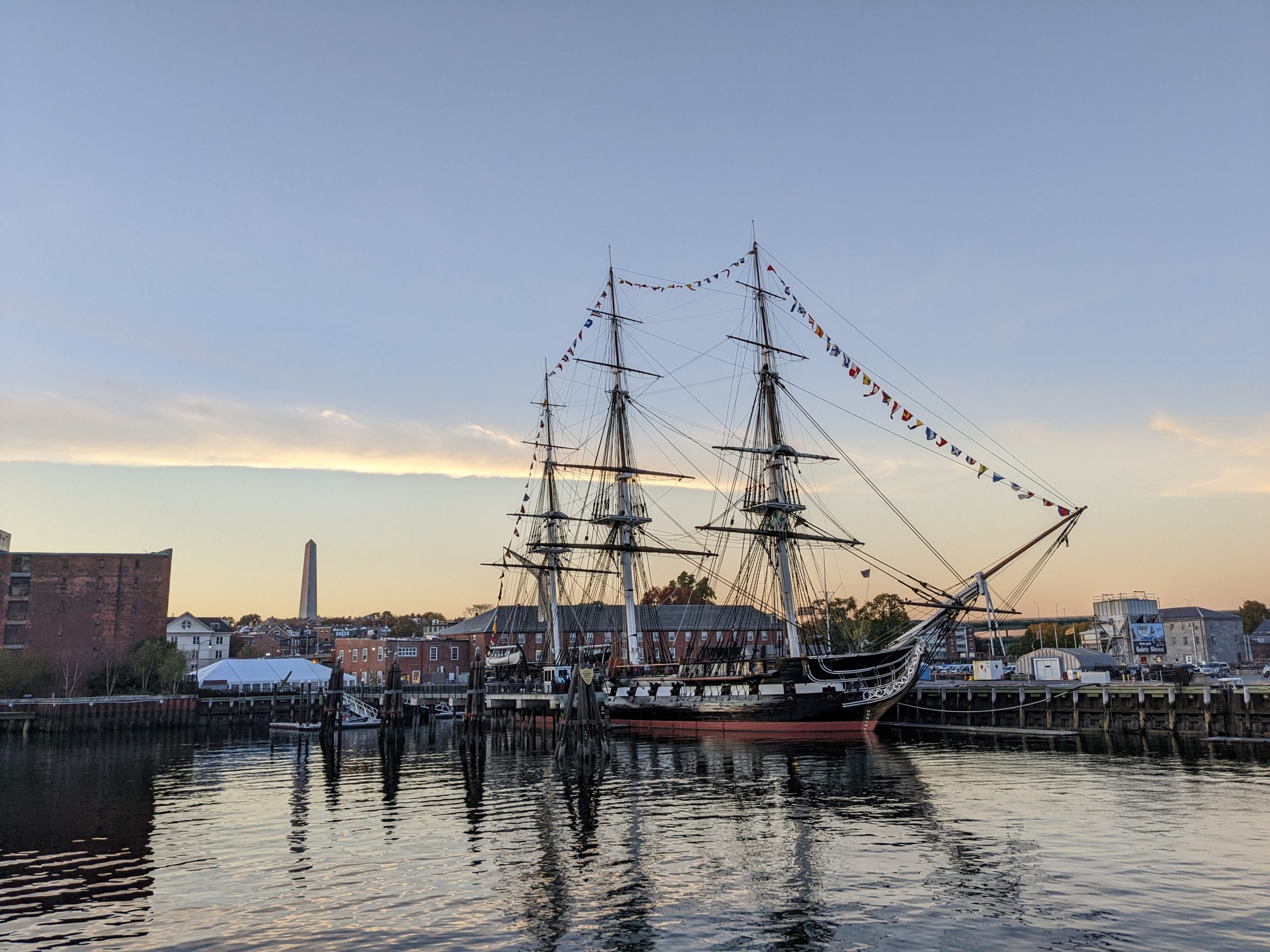 With our belly fully of cannoli we continued on the Freedom Trail across the bridge to Charlestown and to the Bunker Hill Monument. I was surprised to see an outdoor wedding taking place outside the monument on one side, and kids running around and playing and being loud on the other. It seemed like a strange place to set up an outdoor wedding. The monument was closed for the day and with the sun setting, we booked it over to the U.S.S. Constitution (Old Ironsides) to see if we could get a good picture with the sunset. The Constitution was also closed for the day, but we wondered around to get the best photo angle. We had lingered around so long that we actually caught the saluting battery firing where they shot a blank out of one of the cannons. We were in the perfect spot to watch it, yet I still jumped when the shot rang out. It was super loud! I’m glad we were in the right spot at the right time for that.