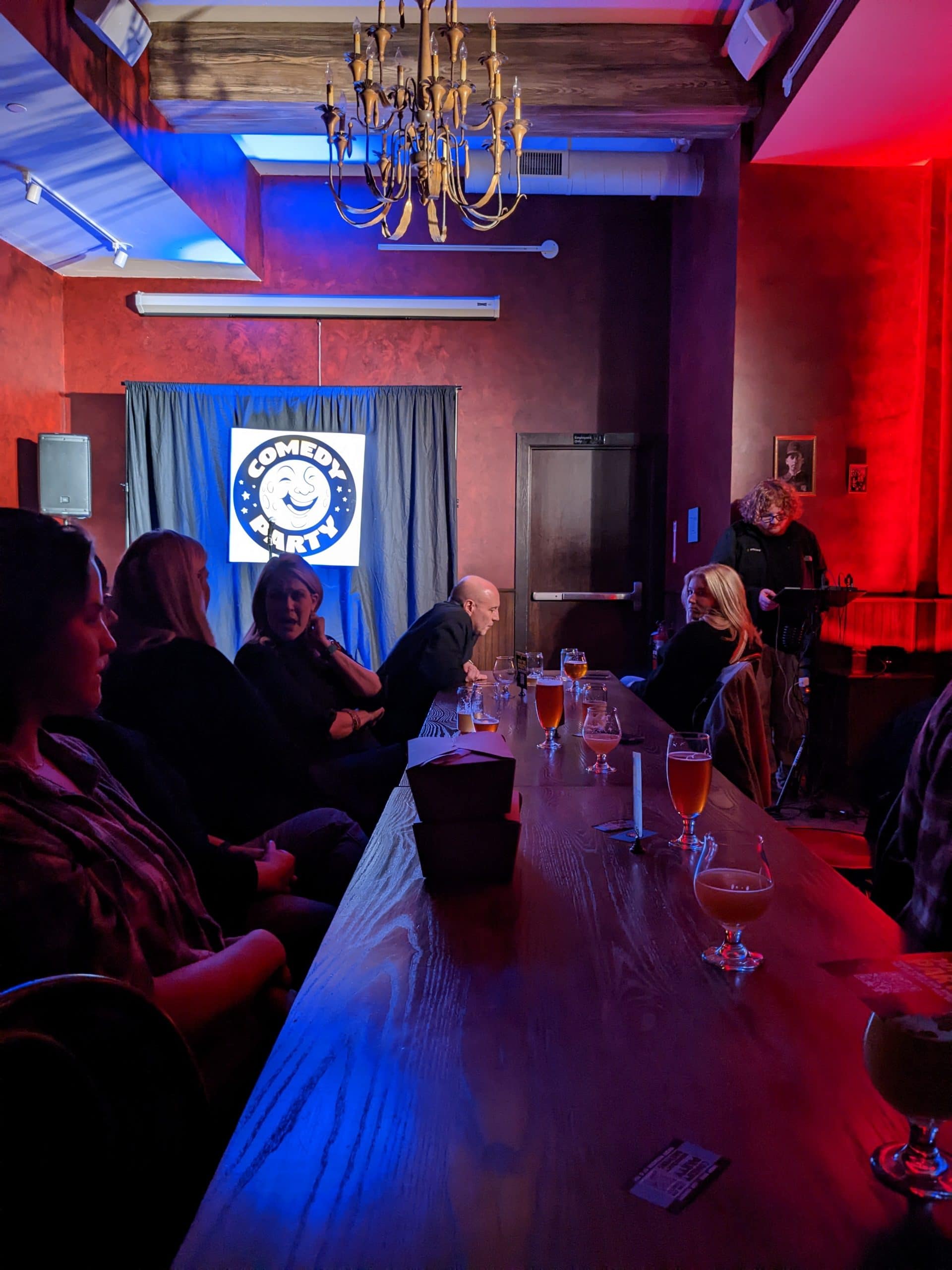Tom had found another iconic bar in the neighborhood that he thought we should get a beer at, so we wondered to it but when we walked in and saw that it had been modernized and a tv blaring the corner of the bar, decided that we didn’t need to stop. We walked back to our hotel to drop off the éclair and re-group for the evening. I did a quick internet search of things to do and found that on Saturday nights at Democracy Brewing Company (https://www.democracybrewing.com) near Boston Commons they hold a Comedy Party with several comedians performing from 8:00-10:00. That sounded like fun so we got back on the T and got back off at the same stop that we had this morning. We had gone full circle and found it funny that we were back to where we started in what felt like days ago. We got a beer at the bar and when the doors opened, made our way into the backroom for the comedy show. The room was quite small and held no more then 50 people. In total 6 comedians performed. They were funny, but not fall out of our seat laughing funny. We were still happy with the choice to attend the show.