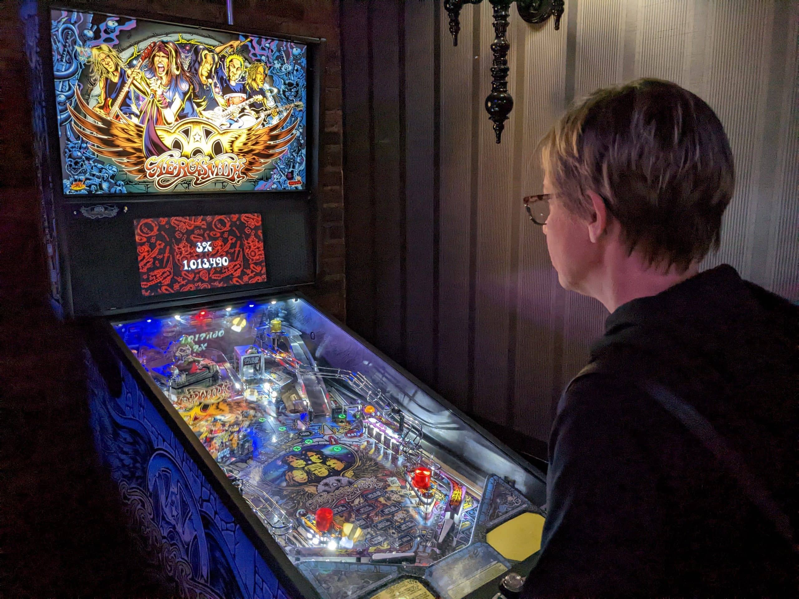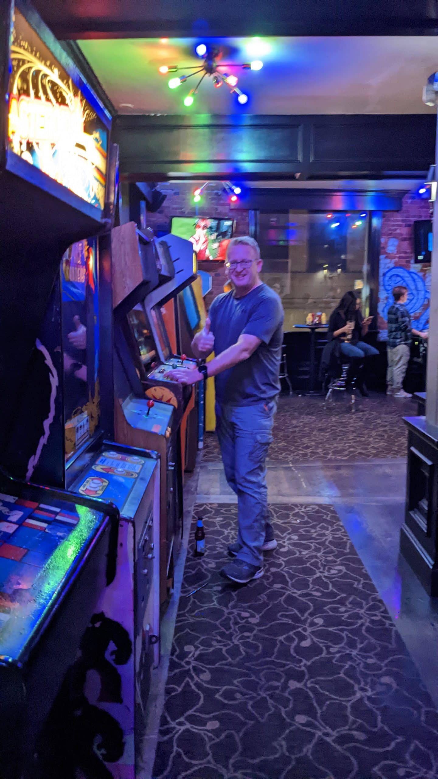 After the comedy show we headed to Versus Arcade Bar (https://www.versusboston.com) that was just a few blocks away. It was $5 cover charge to get in and was pretty packed with people. It didn’t have a ton of arcade games, but they had some of the classics Tom likes to play (no Tron though). I managed to score a seat at the bar and ordered a smash burger and fries that Tom and I shared. Before our food came out the guy sitting next to me left so Tom was able to sit down too. The burger was pretty good, but we were both super happy that we shared this meal. I would have been overstuffed if I ate the whole thing myself. We weren’t sure if we were going to be able to get on any of the games because it seemed like it was pretty busy, but by the time we were ready to play, the games were pretty vacant. Tom made it a point to get his name on the leaderboard on many of the games that he could with taking first on Asteroids. It was getting to close to midnight so it was time to go. We got back on the subway and went back to the hotel.