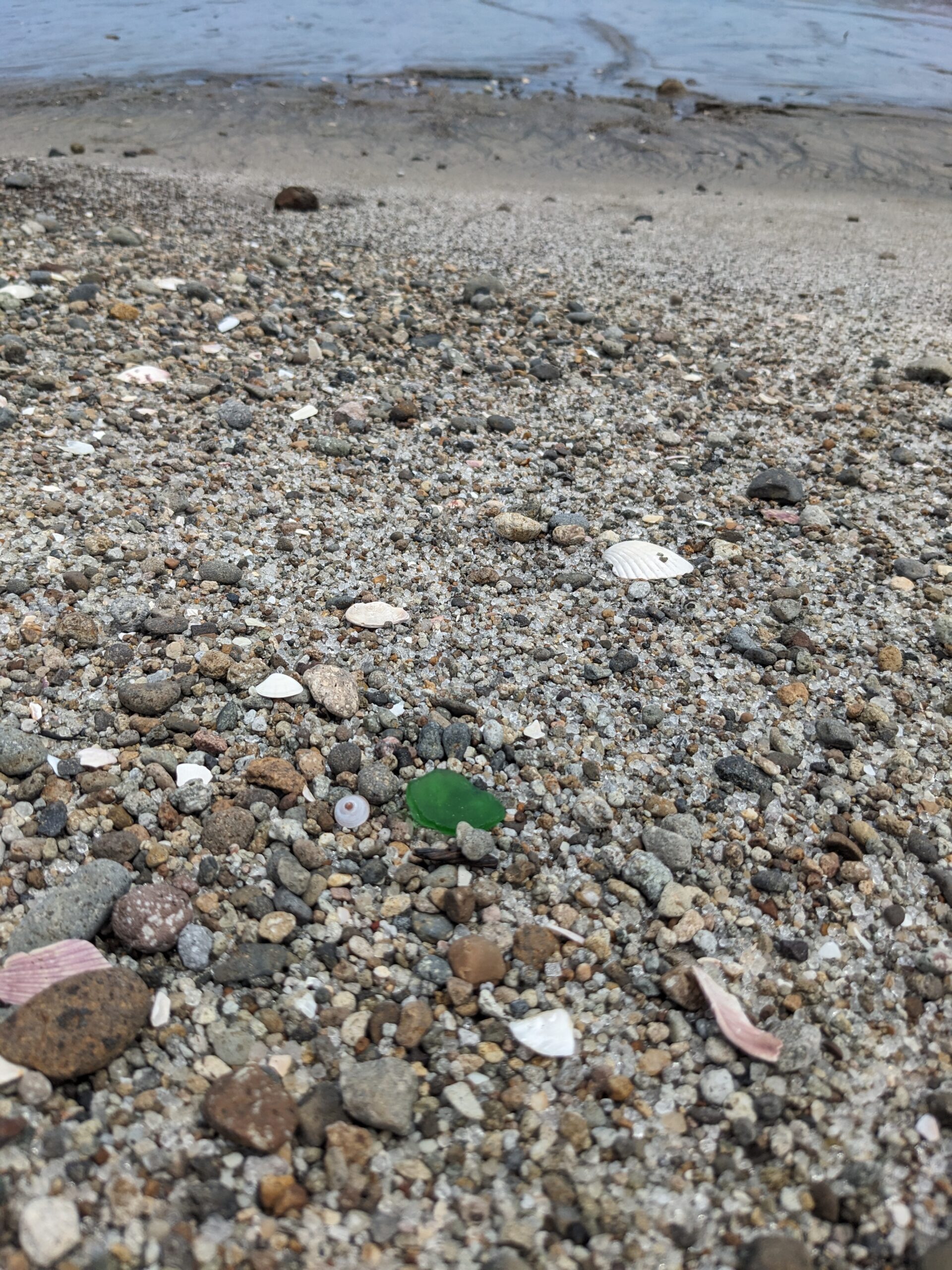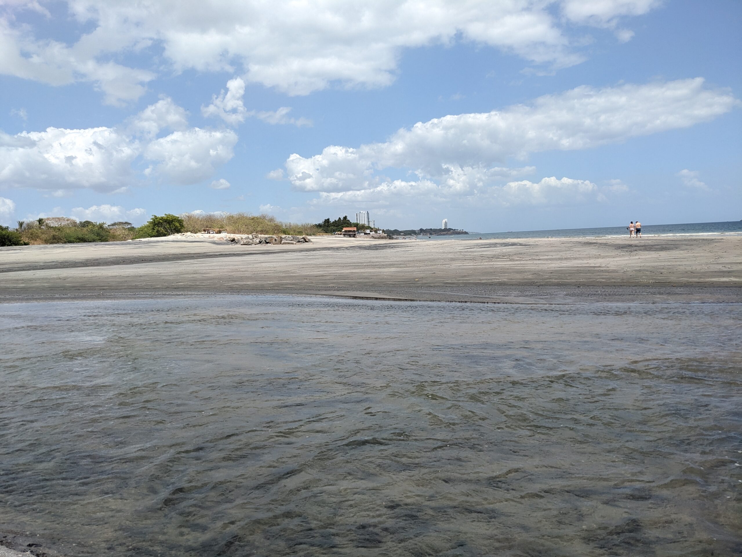 The tide appeared to be out and we had a large expanse of beach to walk. The sand was nice and hard where the water had been, so it made for easy walking. At first we just saw a few sprinkling of shells, but before too long I spotted my first piece of sea glass. The walk going out was comfortable temperature wise, but when we turned around and came back it felt extra hot. We walked for a bit before Linda asked how far I had planned on walking. We saw some horses corralled on the beach and she said she was going to walk as far as the horses. I looked at my Google map and saw that just past the horses was a break in the beach divided by water, so I said I would walk until I got to the water. Since it was a just a little ways further she joined me. Just past the horses, we got to an area where a little more stuff was washed ashore and I had just found a nice piece of green sea glass when I said to Linda “I’m still waiting to find my first sea marble.” The words had just barely left my mouth and what did I spot? A sea marble!!! The timing couldn’t haven’t been more unreal. It was so unbelievable and I was so excited!! I was already in my happy place getting steps on a beach, but finding the marble really put this stop over the top! For the marble alone, I would concur with the book that this was one of Panama’s best Pacific beaches. We walked the beach for about an hour and fifteen minutes total and I’m so very happy that we made this stop.