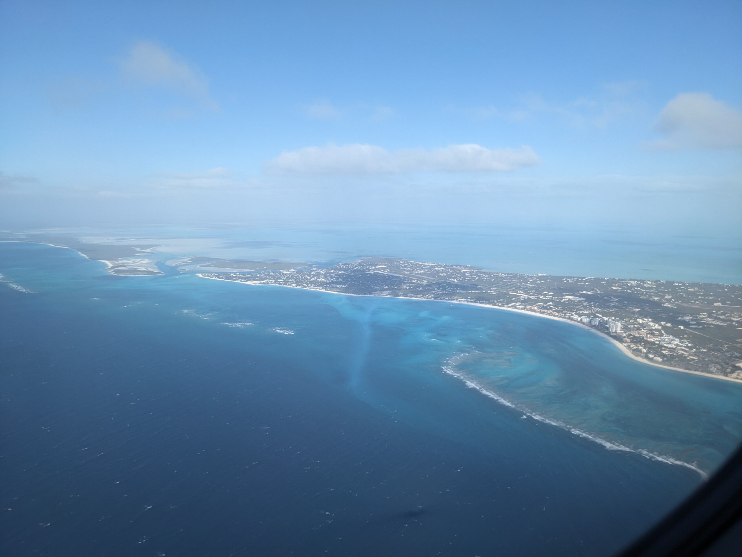 It was now time to return the blueberry muffin to Thrifty and get ourselves to the airport. We didn’t have any issues. Erica and I tried to get different seats at check-in, but the agent said there was a charge for the seat, so we just kept it as is. Funny thing is, I had an entire row to myself, albeit it was the second to last row on the plane. The line to get through security was long, but moved at a steady pace. No TSA precheck here so laptops, shoes, and liquids all had to be removed. The terminal in Providenciales is very small as they have limited flights a day and ours was the second to last flight. I got an extra bonus as I was randomly selected for an extra security screening before boarding. Once again I had to take off my shoes open my bag drag out my laptop and open my water bottle and get it all recombulated to walk on the plane. At least they had the back door open so I could board from the rear of the plane. That made it convenient for my second to last row seat.