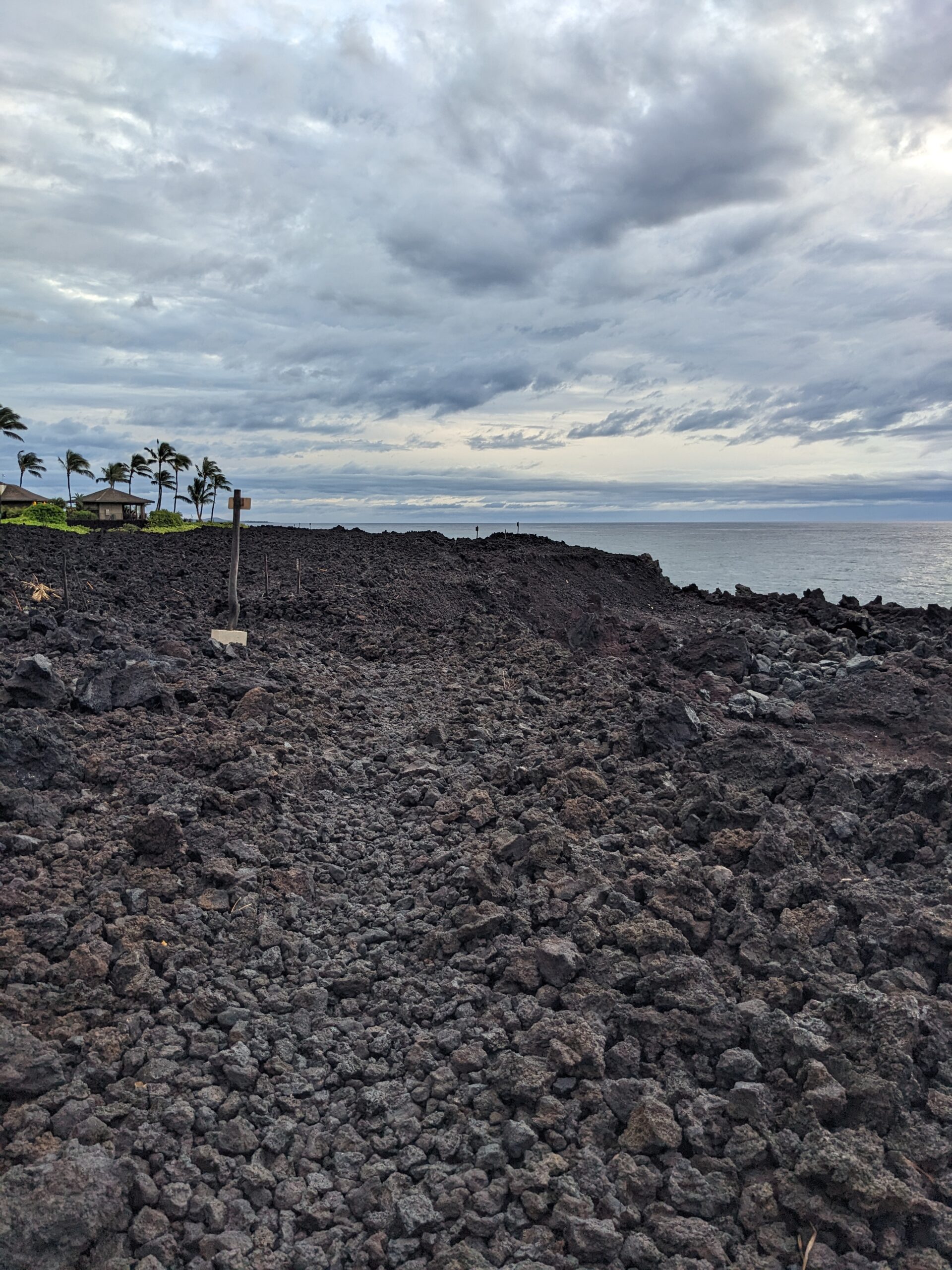 We got back to the condo about 6:00p.m. Since I had less then 1000 steps for the day and it had stopped raining, I headed out for a walk. I first started toward the pool area where I knew I could pick up a lava rock trail along the ocean. I walked for about 15 minutes on the trail before I remembered I wanted to find a geocache today to fill in my calendar. There was none close in the direction I was going and it was going to get dark soon. In addition, that lava rock trail is not a trail anyone should be walking in the dark. I headed back out of the condo complex to the main road. There was a geocache not far off the sidewalk about a 1/2 mile up the road. It was starting to get dark quick so I was happy I made the find right away. It was an ammo can amongst a field of lava. It would not have been safe to look in complete darkness. At this point I had just over 6,000 steps. I opted to keep going to get more steps instead of heading directly back to the condo. I walked up to the shopping mall before I turned around and headed back. As I walked back in the condo I had 10,029 steps. Goal achieved!