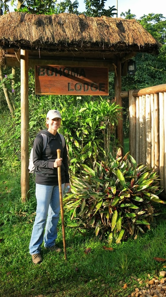 After very little sleep we were on our way to the Bwindi Impenetrable Forest where we would do the mountain gorilla trekking. We were told the drive would take 9-10 hours. We stopped at the Equator and enjoyed taking pictures and watching a demonstration of how water twirls down the bowl depending if you are in the Northern or Southern hemisphere. A couple of hours from the Equator we stopped and enjoyed a buffet lunch. After lunch it was all car ride until we got to our lodge at around 7:30p.m. It was a very long day in the car!! The last 4 hours or so of the trip were all on dirt roads, which our driver affectionately called our “African Massage”. The countryside of Uganda is stunning! It is super green and hilly. We also really enjoyed waiving to all the children who were walking along the dirt road. They would get so excited when they would see us. After awhile, I felt like I was in a parade and waving all the time. The children brought such joy! After we finally arrived at our hotel, we got to our room which was very nice. No glass windows, but it was surrounded by screens. The temperature is very cool at night which is a great difference from what we’re used to in Djibouti. Dinner was a fixed course of a stuffed tomato appetizer (super yummy), fish and mushroom soup (also very good),beef, potatoes and vegetables for the main course (amazing), and lemon pineapple pie for dessert (delicious)! All in all the meal was outstanding and then it was time to hit the sack after an extremely long day.