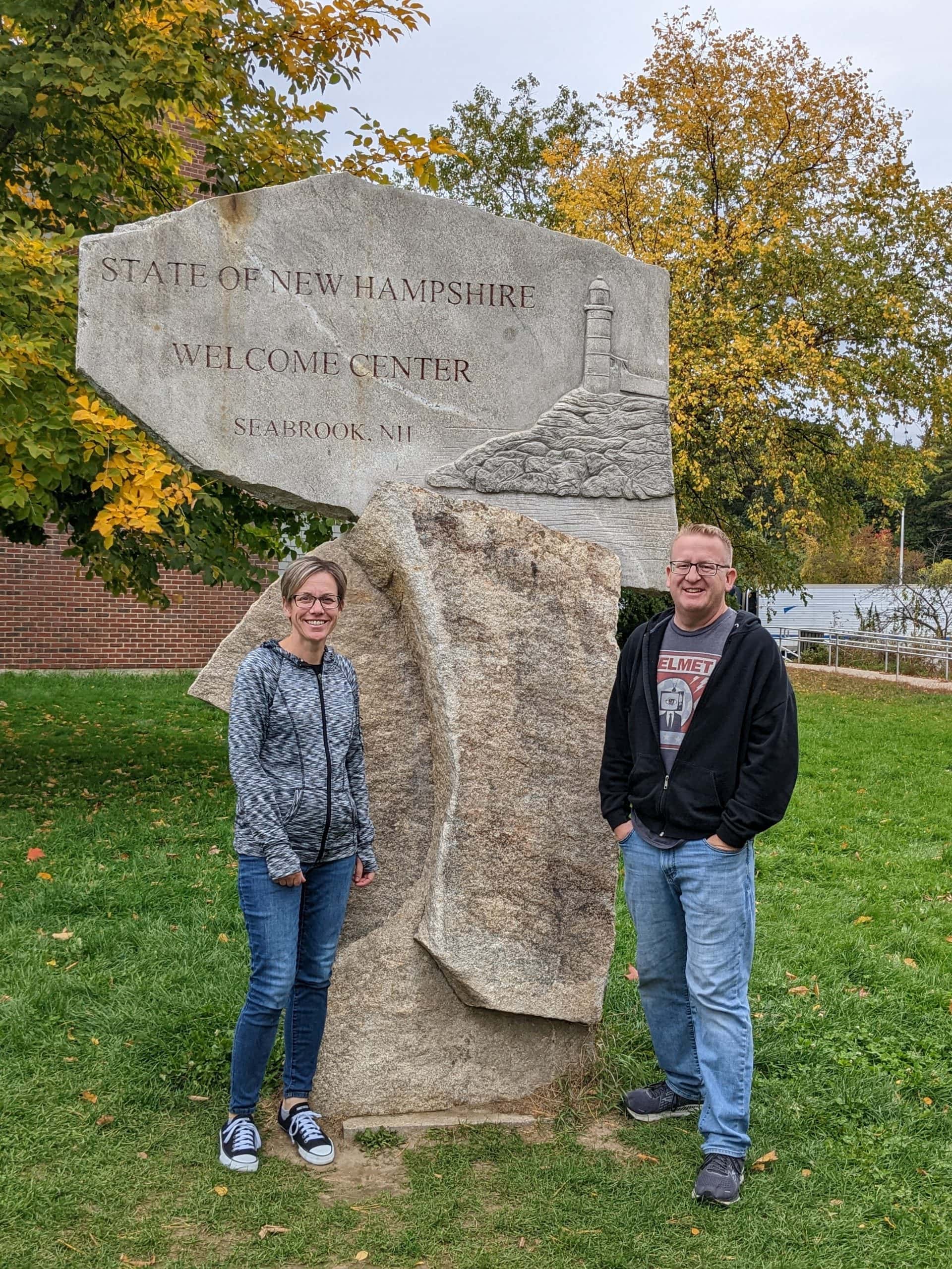 We got back to our car with a minute to spare on the meter and plugged the address to our next Bed and Breakfast in Portland, ME into the GPS, making sure to hit the avoid tolls option. I had wanted to take US Route 1 anyway. The route did take us on the freeway for a short way which I didn’t mind because we then were able to get off at the New Hampshire Welcome rest stop where I was able to score 2 quick geocaches and a nice fall picture. If it’s past peak colors, it’s hard to tell. So far I have been impressed with all the color we are seeing. The leaves seem brighter and more colorful then at home.